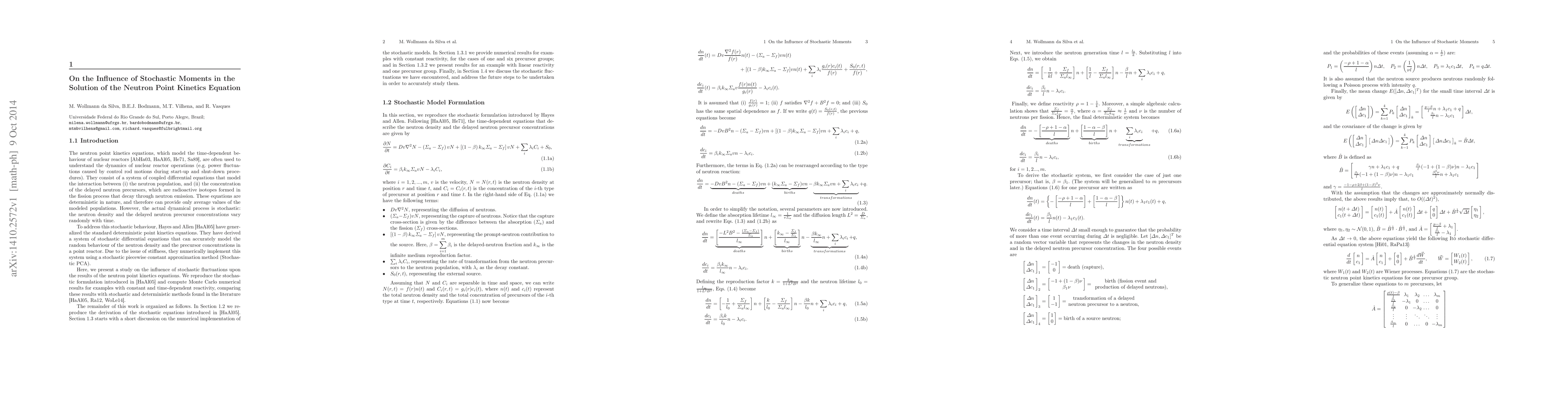 On the Influence of Stochastic Moments in the Solution of the Neutron Point Kinetics Equation