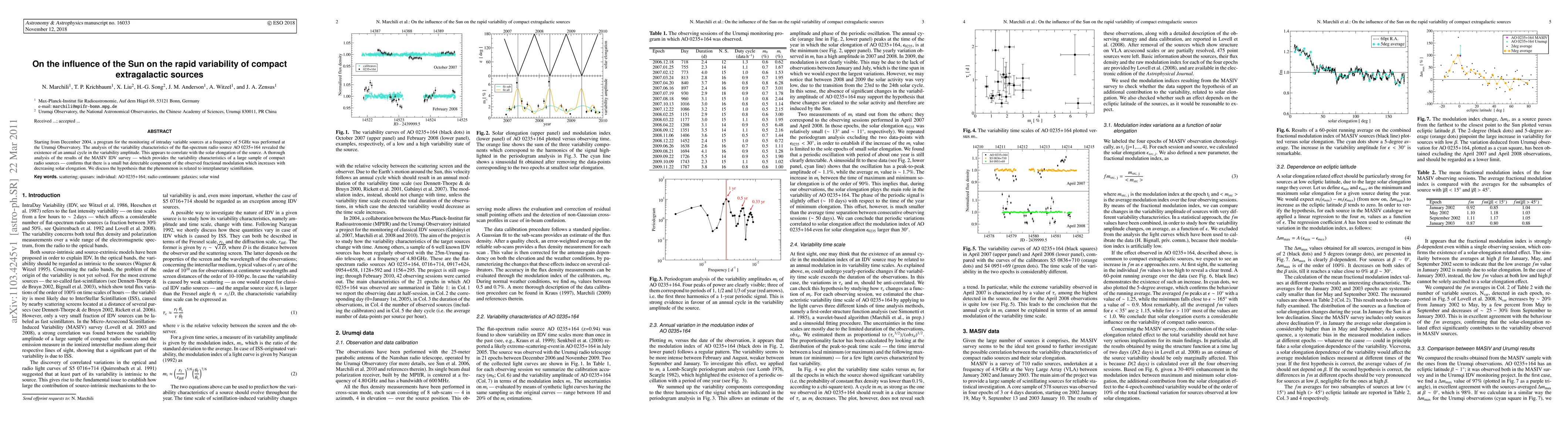 Research found an annual cycle in variability amplitude of a flat-spectrum radio source, correlated with solar elongation, suggesting interplanetary scintillation may cause the phenomenon.