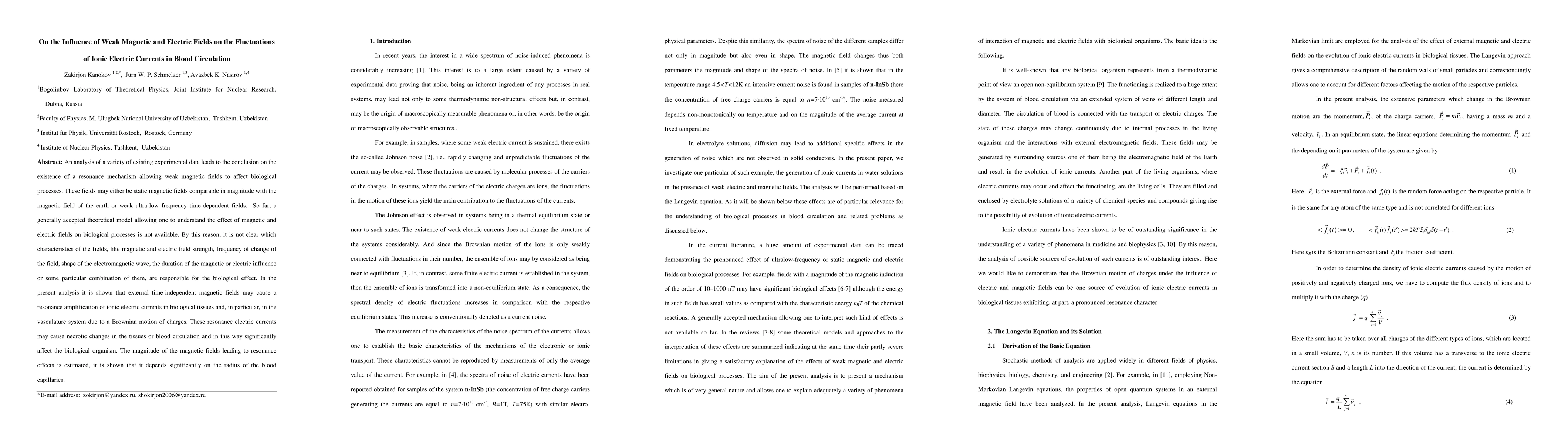 This research analyzes experimental data suggesting weak magnetic and electric fields can influence biological processes through a resonance mechanism amplifying ionic currents in tissues, particularly in blood vessels, due to Brownian motion. The study estimates the magnetic field strength needed for resonance effects, which depends on capillary radius.