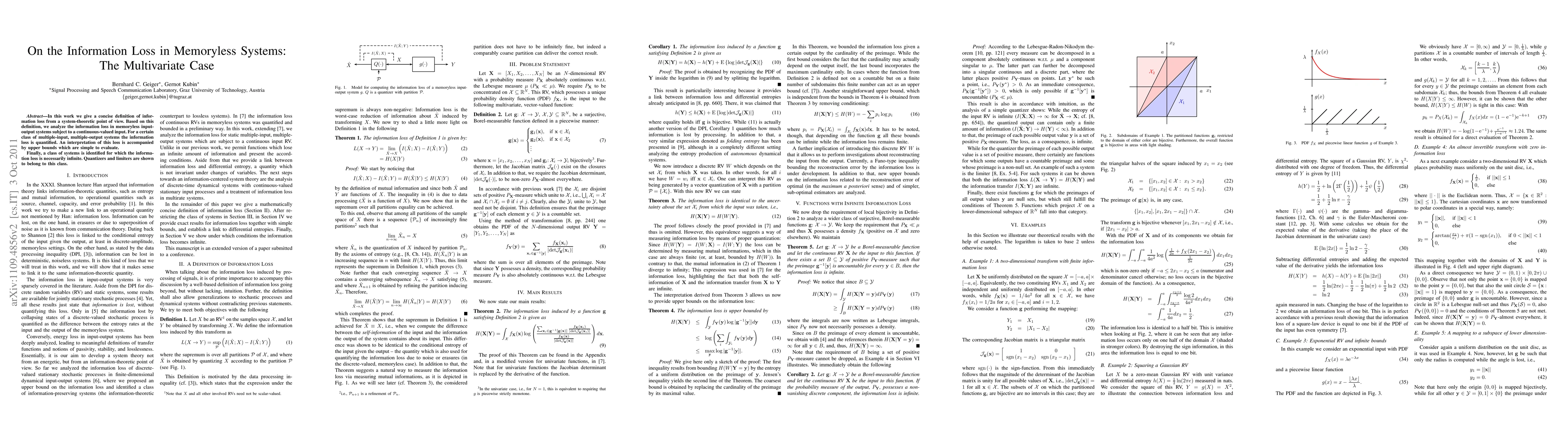 This paper defines information loss in memoryless systems from a system-theoretic perspective and quantifies it for a class of multivariate systems, providing simple upper bounds. It also identifies systems like quantizers and limiters where the information loss is inherently infinite.