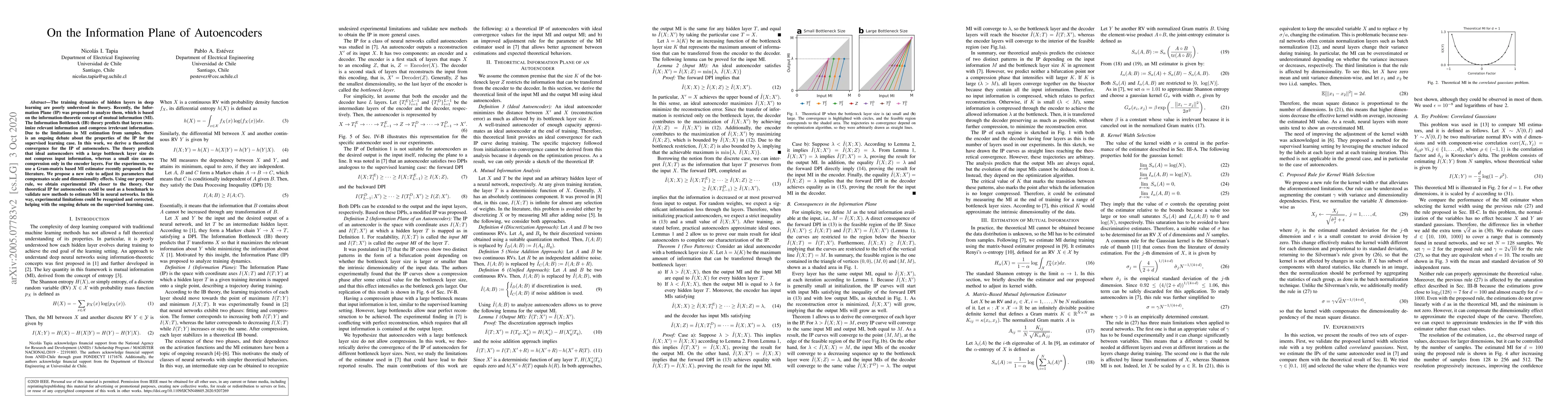 This paper develops a theoretical convergence for the Information Plane (IP) of autoencoders, showing that large bottleneck layers do not compress input information, while small sizes lead to compression in encoder layers. It proposes a new rule to adjust a Gram-matrix based mutual information estimator, achieving experimental IPs closer to theoretical predictions and offering a benchmark for validating new MI estimation methods in neural networks.