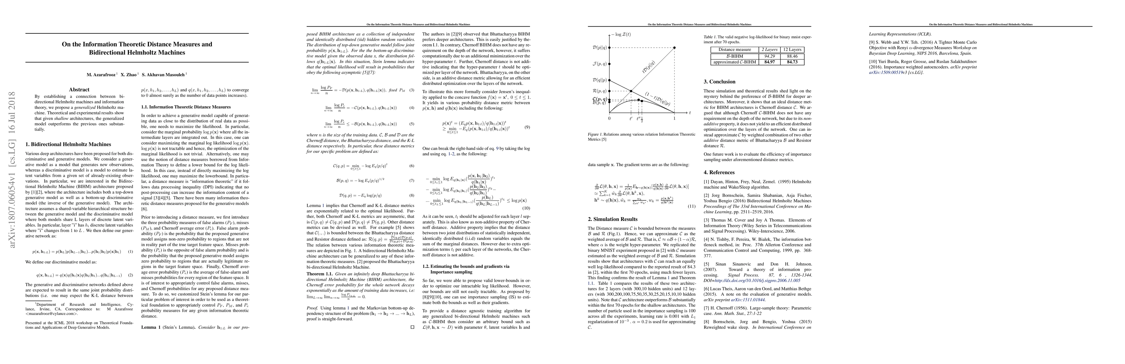 By establishing a connection between bi-directional Helmholtz machines and information theory, we propose a generalized Helmholtz machine. Theoretical and experimental results show that given \textit{shallow} architectures, the generalized model outperforms the previous ones substantially.