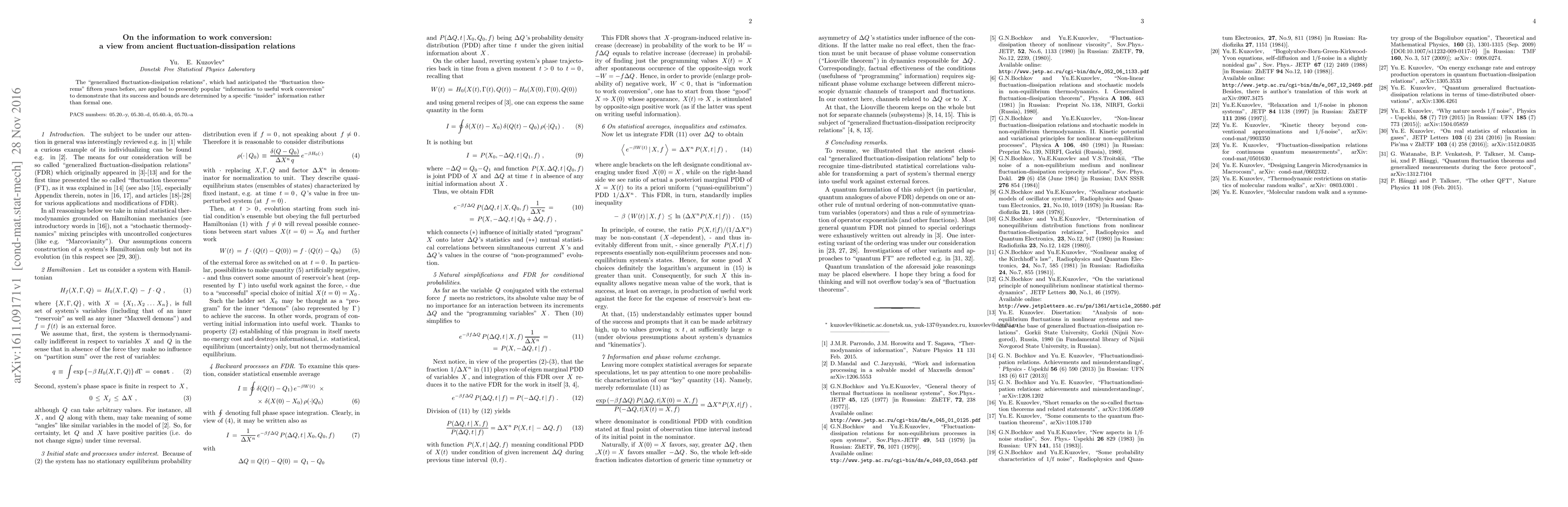 Summary: This paper applies "generalized fluctuation-dissipation relations" to "information to useful work conversion," showing that its success hinges on specific "insider" information rather than formal information, predating the "fluctuation theorems" by fifteen years.