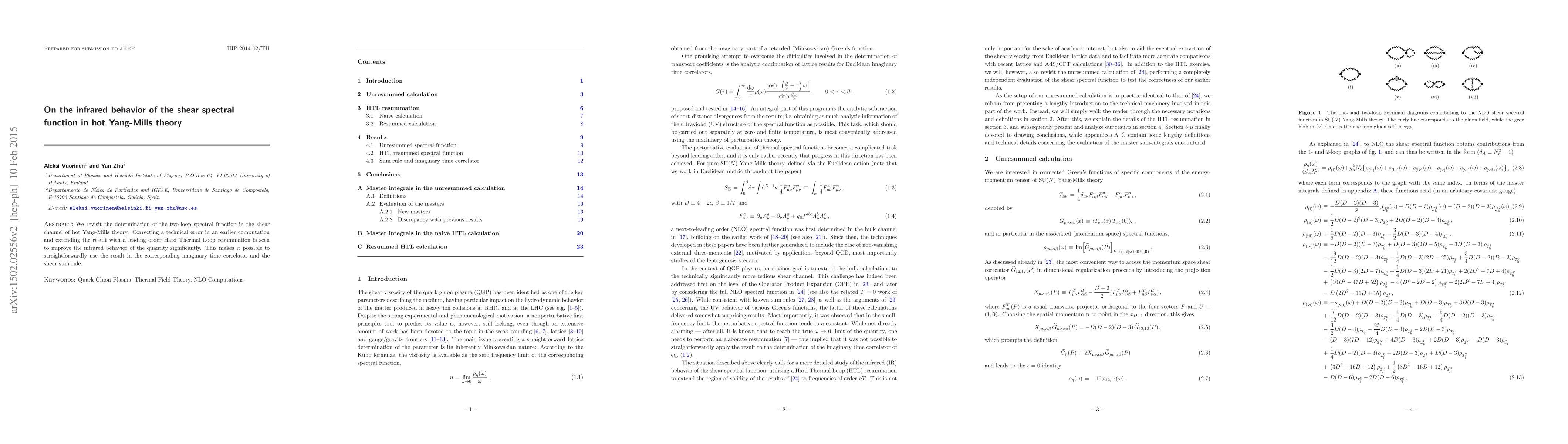 We revisit the determination of the two-loop spectral function in the shear channel of hot Yang-Mills theory. Correcting a technical error in an earlier computation and extending the result with a leading order Hard Thermal Loop resummation is seen to improve the infrared behavior of the quantity significantly. This makes it possible to straightforwardly use the result in the corresponding imaginary time correlator and the shear sum rule.