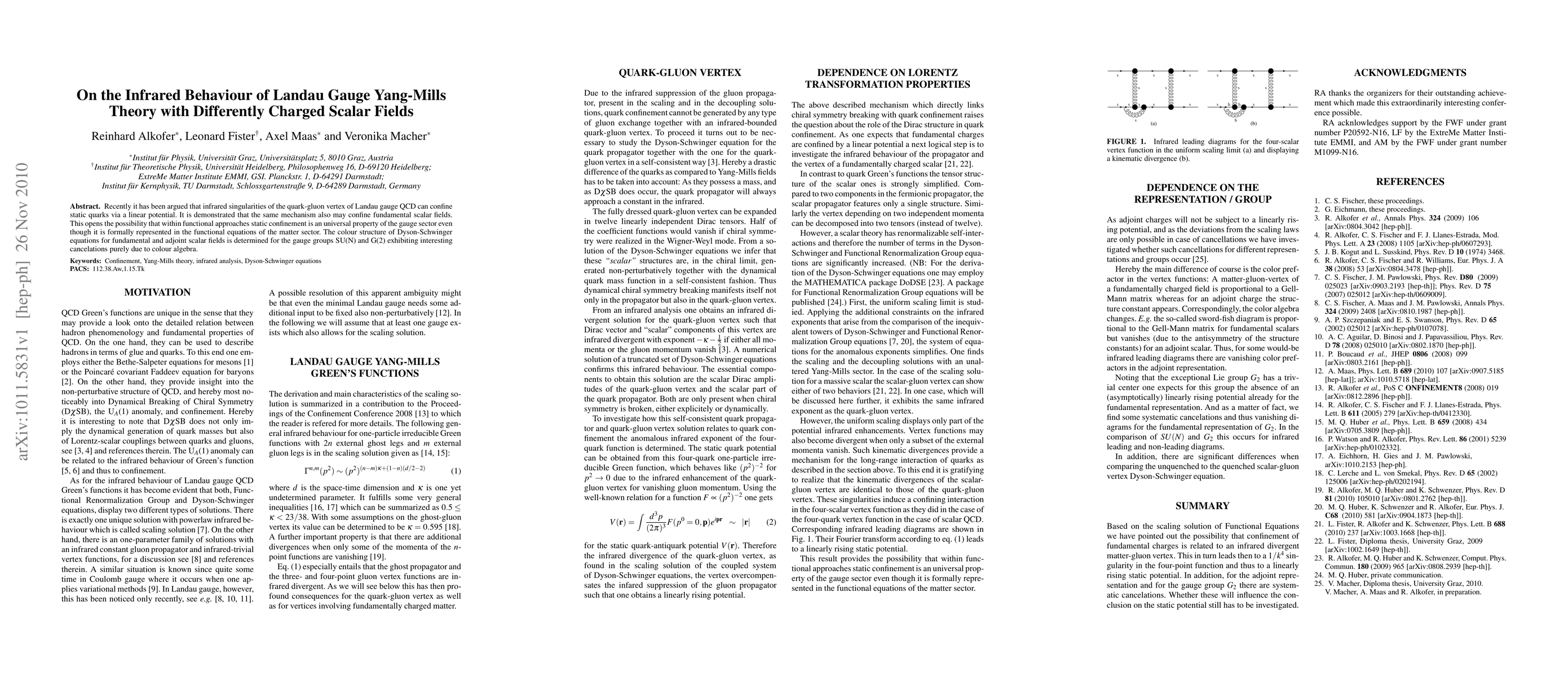Recently it has been argued that infrared singularities of the quark-gluon vertex of Landau gauge QCD can confine static quarks via a linear potential. It is demonstrated that the same mechanism also may confine fundamental scalar fields. This opens the possibility that within functional approaches static confinement is an universal property of the gauge sector even though it is formally represented in the functional equations of the matter sector. The colour structure of Dyson-Schwinger equations for fundamental and adjoint scalar fields is determined for the gauge groups SU(N) and G(2) exhibiting interesting cancelations purely due to colour algebra.
