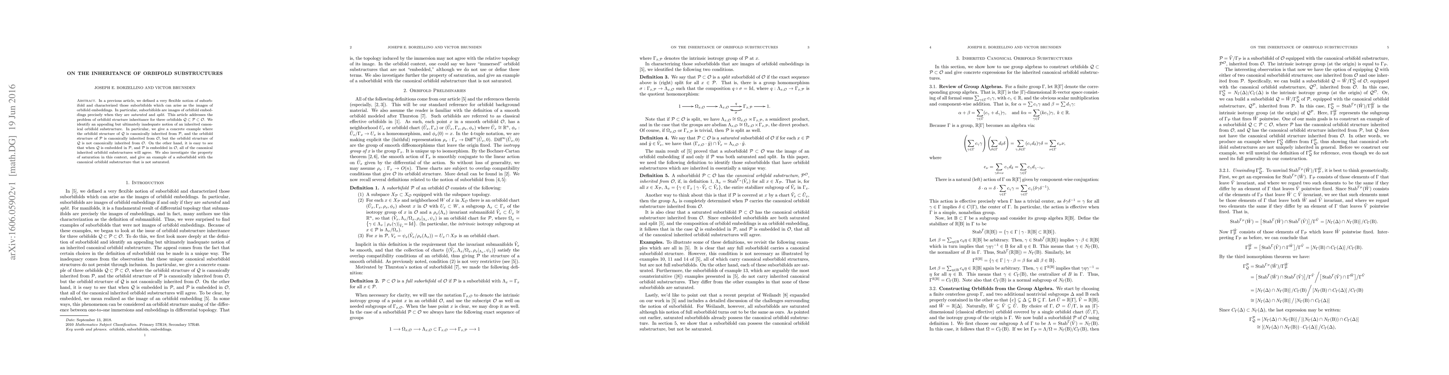 In a previous article, we defined a very flexible notion of suborbifold and characterized those suborbifolds which can arise as the images of orbifold embeddings. In particular, suborbifolds are images of orbifold embeddings precisely when they are saturated and split. This article addresses the problem of orbifold structure inheritance for three orbifolds $\mathcal{Q}\subset\mathcal{P}\subset\mathcal{O}$. We identify an appealing but ultimately inadequate notion of an inherited canonical orbifold substructure. In particular, we give a concrete example where the orbifold structure of $\mathcal{Q}$ is canonically inherited from $\mathcal{P}$, and the orbifold structure of $\mathcal{P}$ is canonically inherited from $\mathcal{O}$, but the orbifold structure of $\mathcal{Q}$ is not canonically inherited from $\mathcal{O}$. On the other hand, it is easy to see that when $\mathcal{Q}$ is embedded in $\mathcal{P}$, and $\mathcal{P}$ is embedded in $\mathcal{O}$, all of the canonical inherited orbifold substructures will agree. We also investigate the property of saturation in this context, and give an example of a suborbifold with the canonical orbifold substructure that is not saturated.