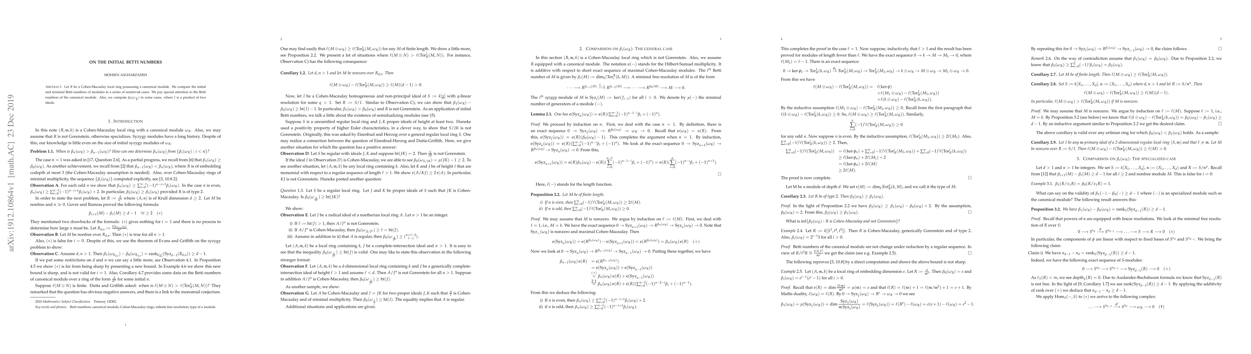 This research paper compares initial and terminal Betti numbers of modules in a series of cases, with a focus on the canonical module, highlighting key findings and implications for Cohen-Macaulay local rings.