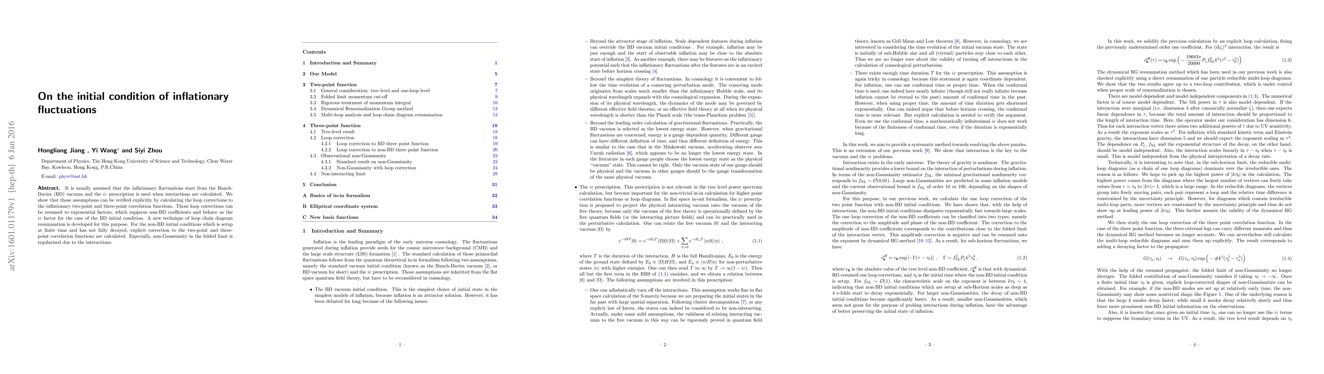 It is usually assumed that the inflationary fluctuations start from the Bunch-Davies (BD) vacuum and the $i\varepsilon$ prescription is used when interactions are calculated. We show that those assumptions can be verified explicitly by calculating the loop corrections to the inflationary two-point and three-point correlation functions. Those loop corrections can be resumed to exponential factors, which suppress non-BD coefficients and behave as the $i\varepsilon$ factor for the case of the BD initial condition. A new technique of loop chain diagram resummation is developed for this purpose. For the non-BD initial conditions which is setup at finite time and has not fully decayed, explicit correction to the two-point and three-point correlation functions are calculated. Especially, non-Gaussianity in the folded limit is regularized due to the interactions.
