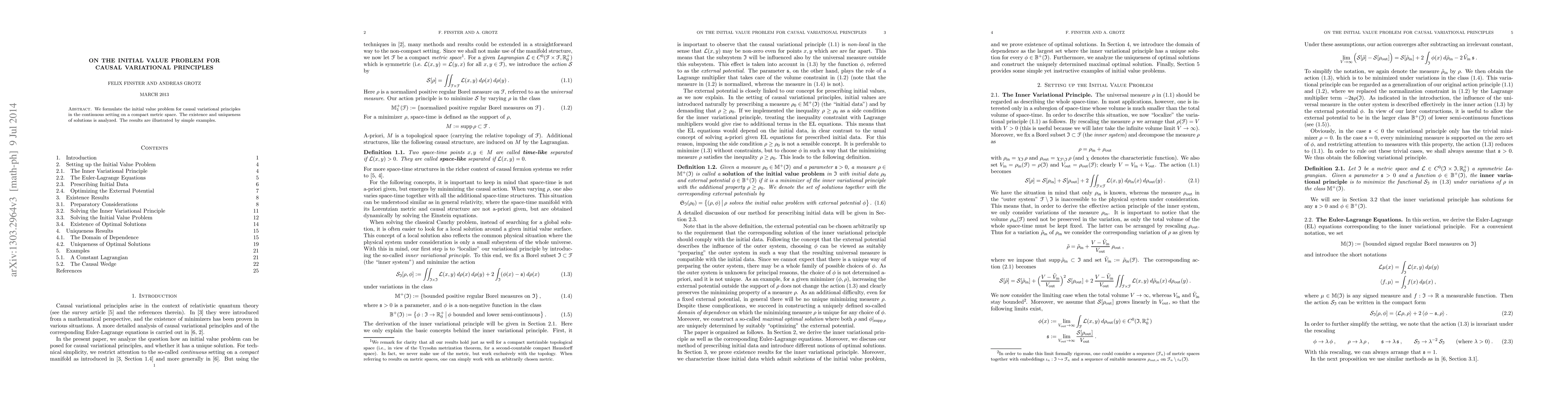 This paper formulates the initial value problem for causal variational principles on a compact metric space, analyzing the existence and uniqueness of solutions, and demonstrates the findings with straightforward examples.