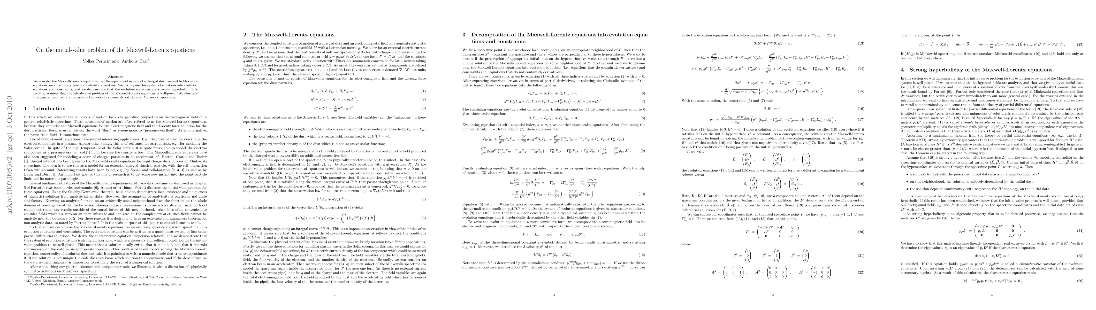 This paper investigates the initial-value problem for the Maxwell-Lorentz equations in general relativity, demonstrating that the evolution equations are strongly hyperbolic, thus ensuring the well-posedness of the problem. It also explores spherically symmetric solutions in the context of Minkowski spacetime.