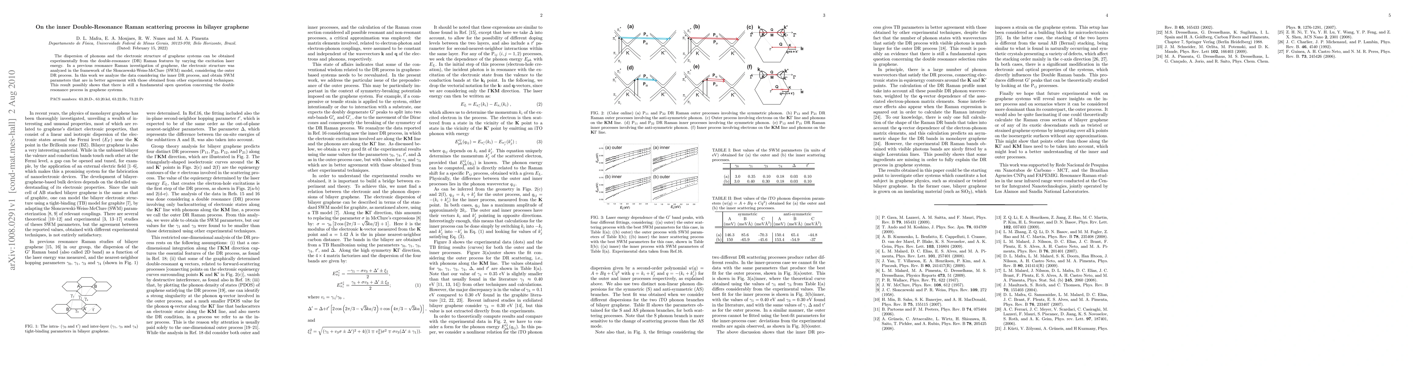 The dispersion of phonons and the electronic structure of graphene systems can be obtained experimentally from the double-resonance (DR) Raman features by varying the excitation laser energy. In a previous resonance Raman investigation of graphene, the electronic structure was analyzed in the framework of the Slonczewski-Weiss-McClure (SWM) model, considering the outer DR process. In this work we analyze the data considering the inner DR process, and obtain SWM parameters that are in better agreement with those obtained from other experimental techniques. This result possibly shows that there is still a fundamental open question concerning the double resonance process in graphene systems.