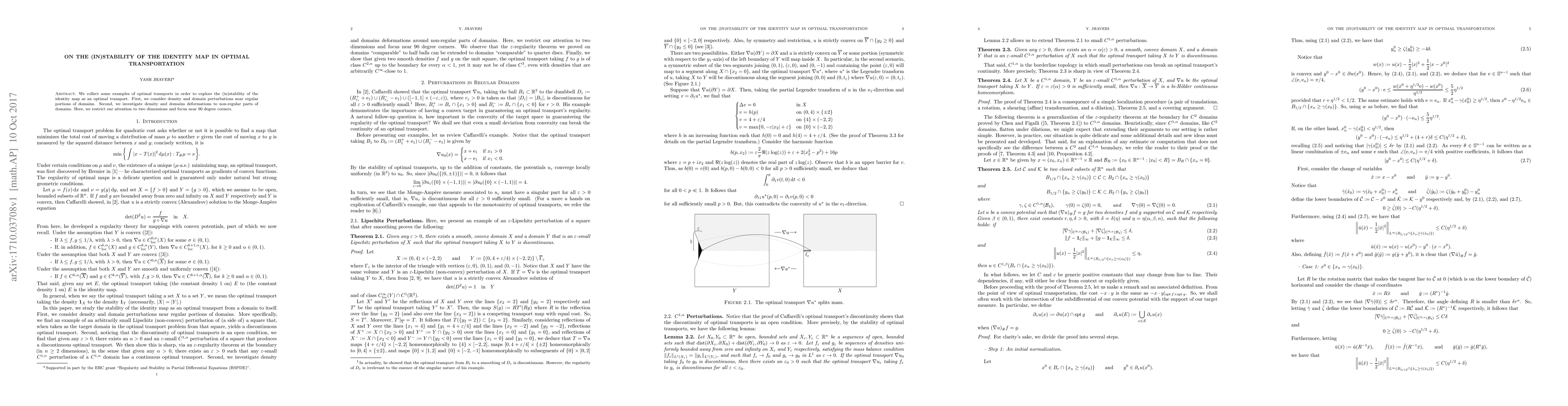 We collect some examples of optimal transports in order to explore the (in)stability of the identity map as an optimal transport. First, we consider density and domain perturbations near regular portions of domains. Second, we investigate density and domains deformations to non-regular parts of domains. Here, we restrict our attention to two dimensions and focus near 90 degree corners.