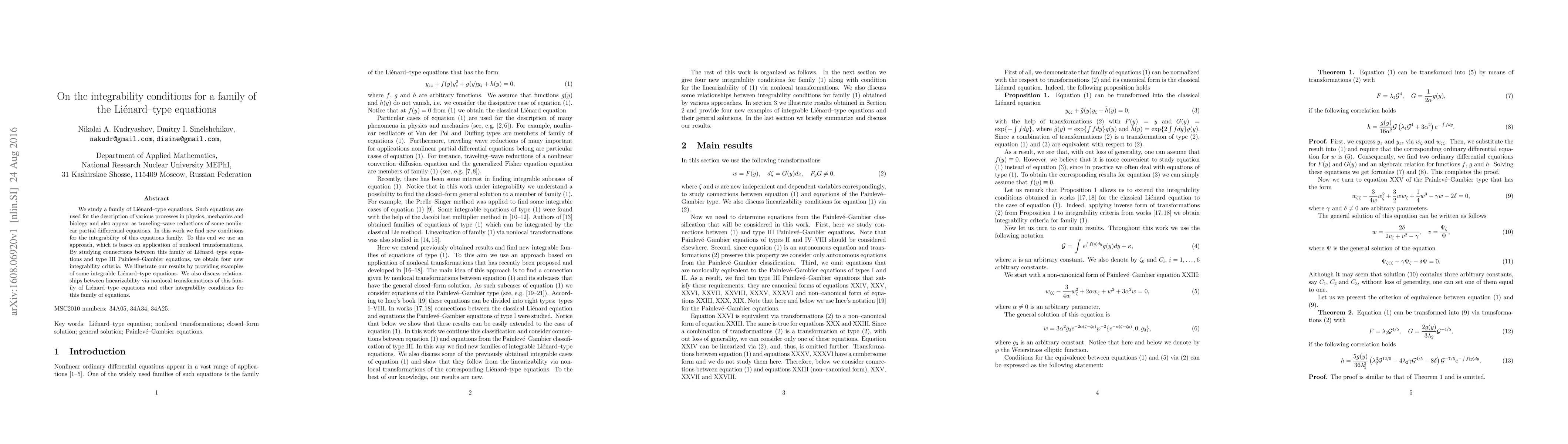 This paper explores new integrability conditions for a family of Liénard-type equations, using nonlocal transformations and connections to type III Painlevé-Gambier equations to derive four new integrability criteria. Examples of integrable equations are provided to illustrate the findings.