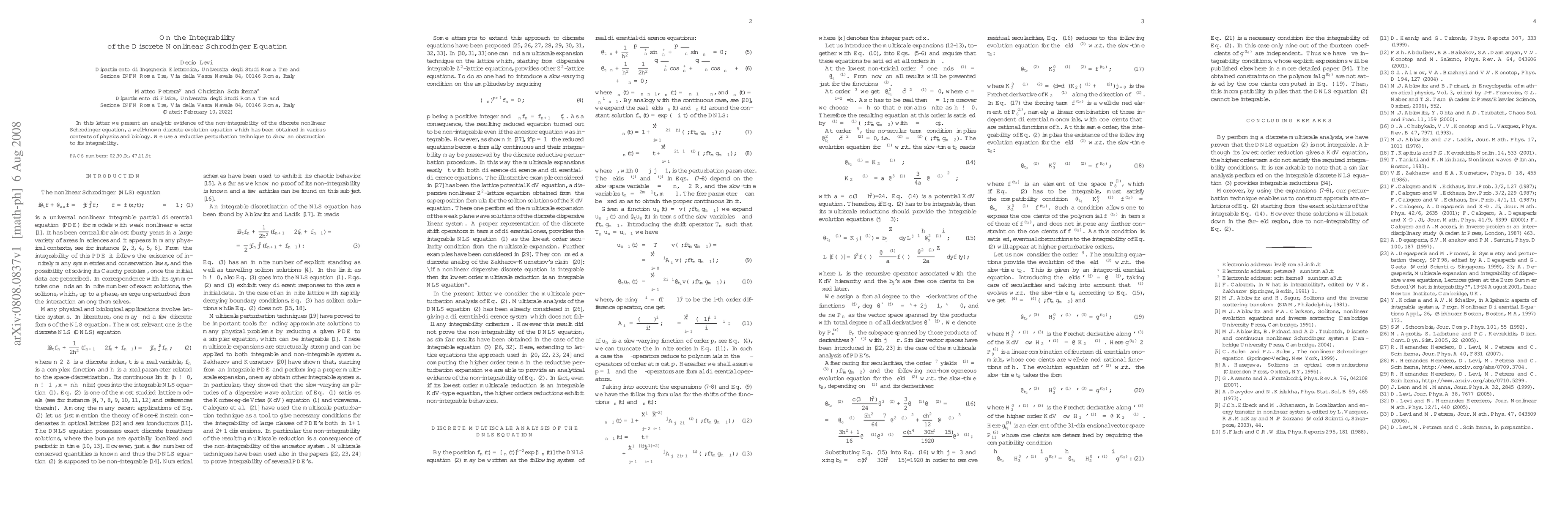 Summary: This paper provides analytic evidence for the non-integrability of the discrete nonlinear Schrödinger equation using a reductive perturbation technique, highlighting an inherent obstruction to its integrability.