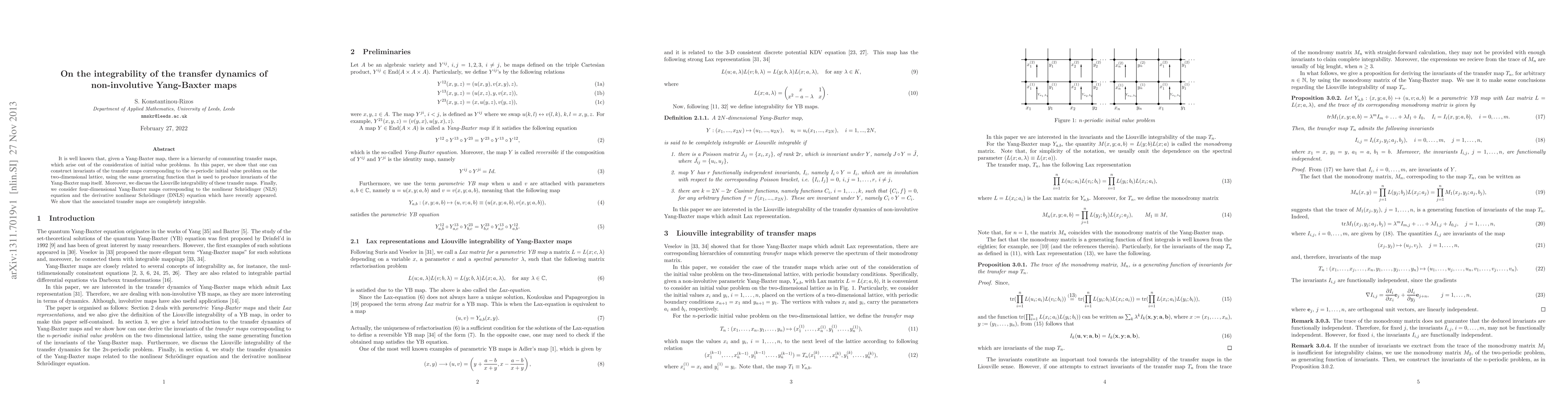 This paper constructs invariants for transfer maps derived from non-involutive Yang-Baxter maps using a common generating function, and discusses their Liouville integrability, particularly for four-dimensional maps linked to the NLS and DNLS equations, demonstrating complete integrability.