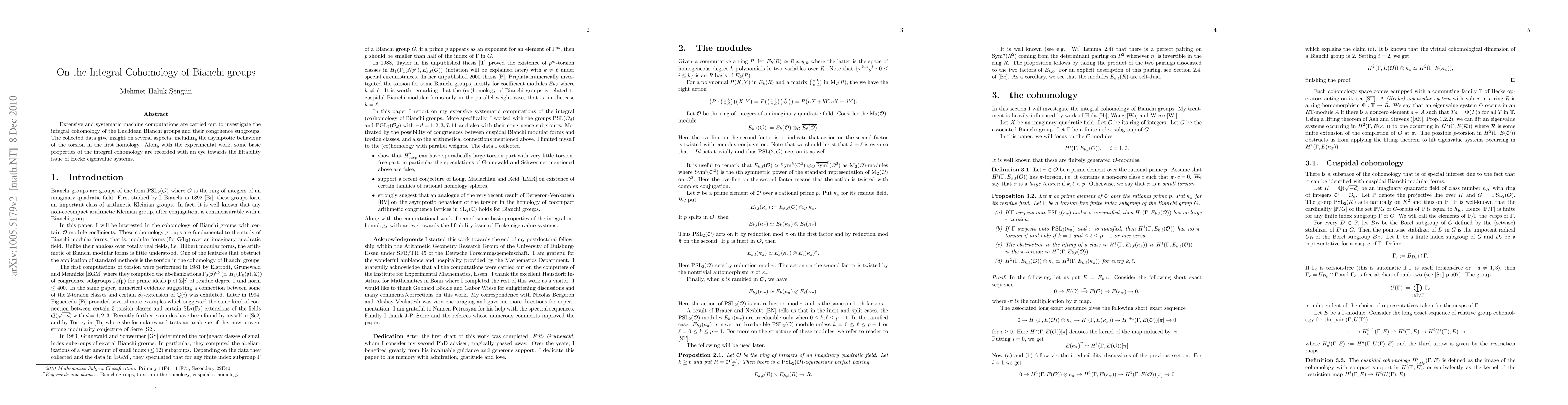 This paper presents extensive machine computations to explore the integral cohomology of Euclidean Bianchi groups and their congruence subgroups, providing insights into the torsion behavior in first homology and discussing the liftibility of Hecke eigenvalue systems.