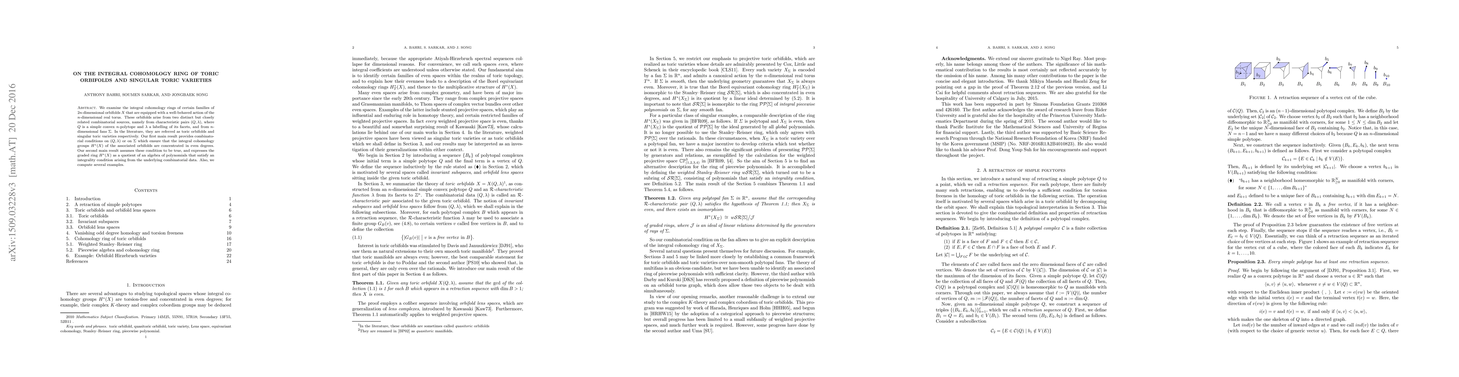 This paper investigates the integral cohomology rings of toric orbifolds and singular toric varieties, providing combinatorial conditions ensuring even degree concentration of cohomology groups. It further expresses these cohomology rings as quotients of polynomial algebras based on the underlying combinatorial data.