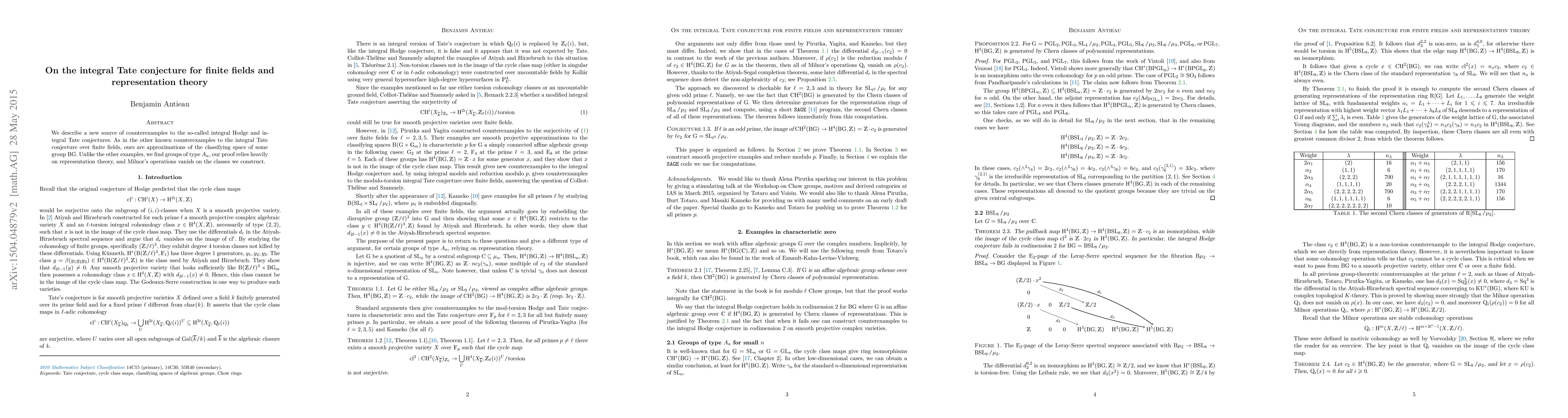 We describe a new source of counterexamples to the so-called integral Hodge and integral Tate conjectures. As in the other known counterexamples to the integral Tate conjecture over finite fields, ours are approximations of the classifying space of some group BG. Unlike the other examples, we find groups of type A_n, our proof relies heavily on representation theory, and Milnor's operations vanish on the classes we construct.
