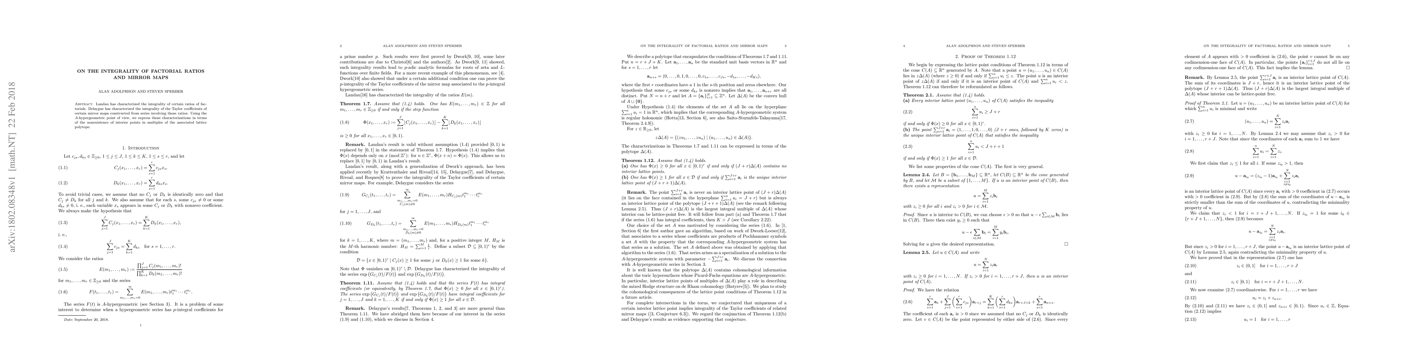 Landau has characterized the integrality of certain ratios of factorials. Delaygue has characterized the integrality of the Taylor coefficients of certain mirror maps constructed from series involving those ratios. Using the $A$-hypergeometric point of view, we express those characterizations in terms of the nonexistence of interior points in multiples of the associated lattice polytope.