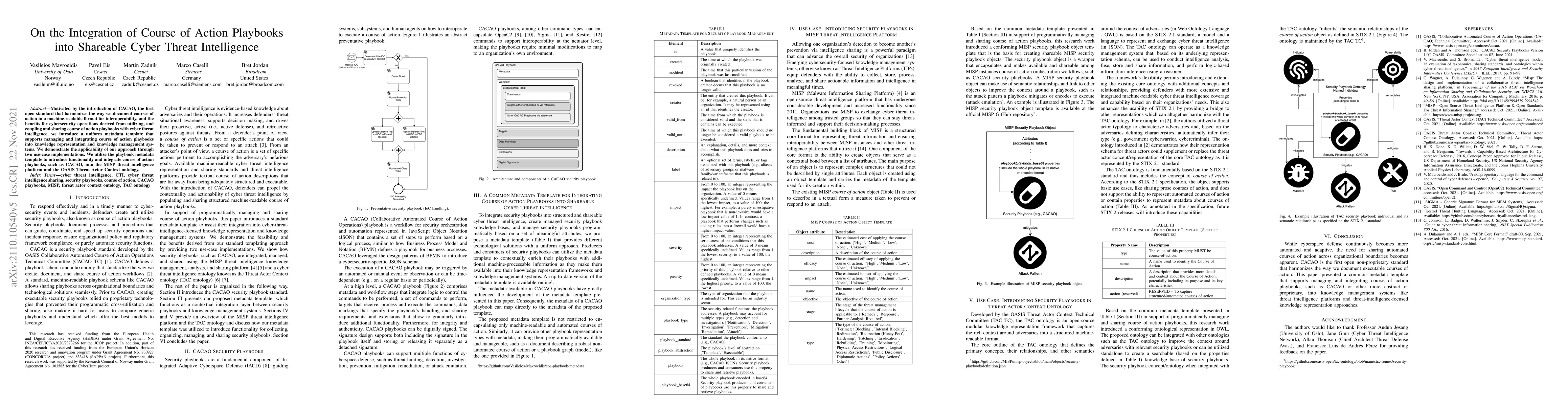This paper introduces a metadata template for integrating course of action playbooks, like CACAO, into cyber threat intelligence systems, enhancing interoperability and usability. The approach is demonstrated through implementations in MISP and OASIS Threat Actor Context.