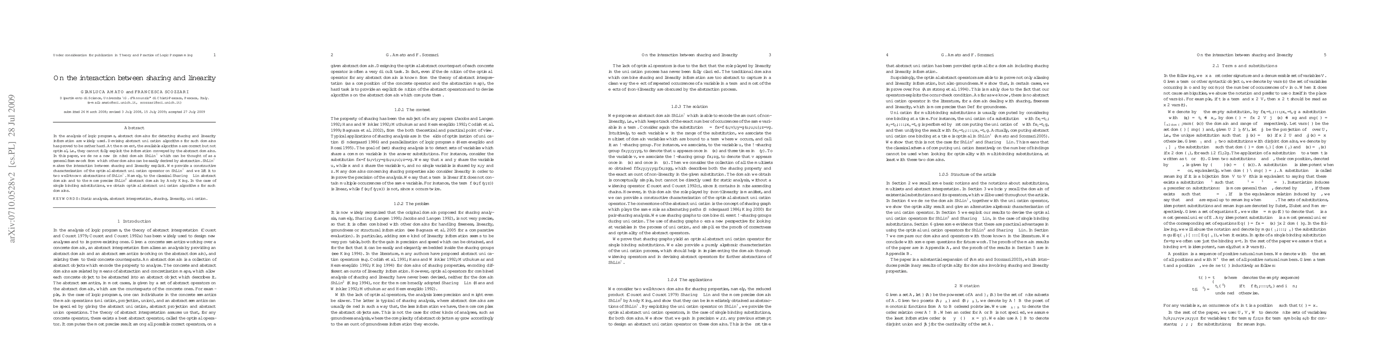 Researchers developed a new abstract domain called ShLin-w that explicitly captures the interaction between sharing and linearity in logic programs. They also derived optimal unification algorithms for two specific abstractions of ShLin-w.