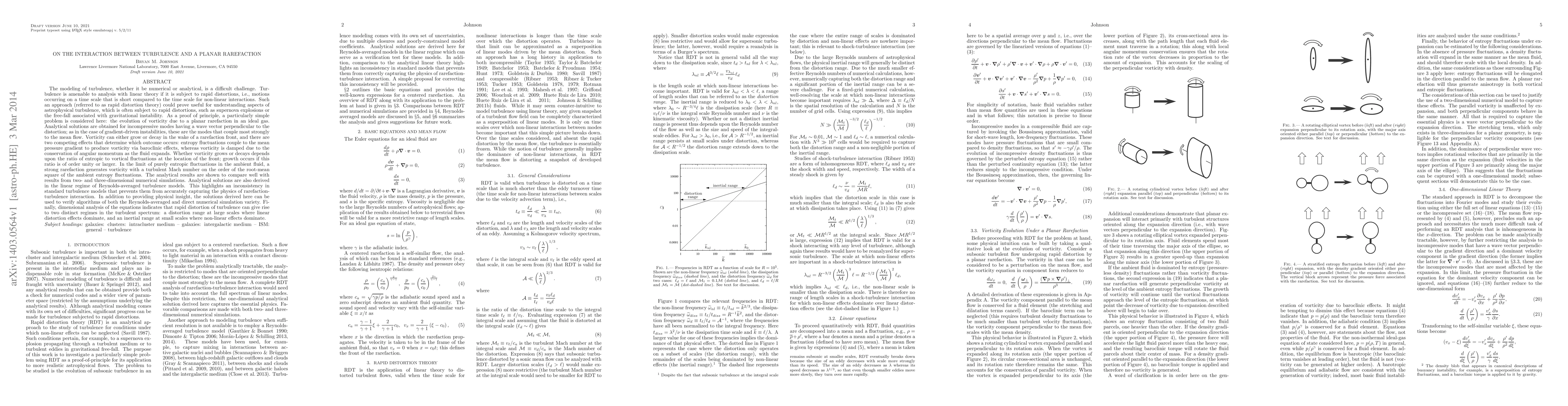 The modeling of turbulence, whether it be numerical or analytical, is a difficult challenge. Turbulence is amenable to analysis with linear theory if it is subject to rapid distortions, i.e., motions occurring on a time scale that is short compared to the time scale for non-linear interactions. Such an approach could prove useful for understanding aspects of astrophysical turbulence, which is often subject to rapid distortions, such as supernova explosions or the free-fall associated with gravitational instability. As a proof of principle, a particularly simple problem is considered here: the evolution of vorticity due to a planar rarefaction in an ideal gas. Vorticity can either grow or decay in the wake of a rarefaction front, and there are two competing effects that determine which outcome occurs: entropy fluctuations couple to the mean pressure gradient to produce vorticity via baroclinic effects, whereas vorticity is damped due to the conservation of angular momentum as the fluid expands. In the limit of purely entropic fluctuations in the ambient fluid, a strong rarefaction generates vorticity with a turbulent Mach number on the order of the root-mean square of the ambient entropy fluctuations. The analytical results are shown to compare well with results from two- and three-dimensional numerical simulations. Analytical solutions are also derived in the linear regime of Reynolds-averaged turbulence models. This highlights an inconsistency in standard turbulence models that prevents them from accurately capturing the physics of rarefaction-turbulence interaction. Finally, dimensional analysis of the equations indicates that rapid distortion of turbulence can give rise to two distinct regimes in the turbulent spectrum: a distortion range at large scales where linear distortion effects dominate, and an inertial range at small scales where non-linear effects dominate.