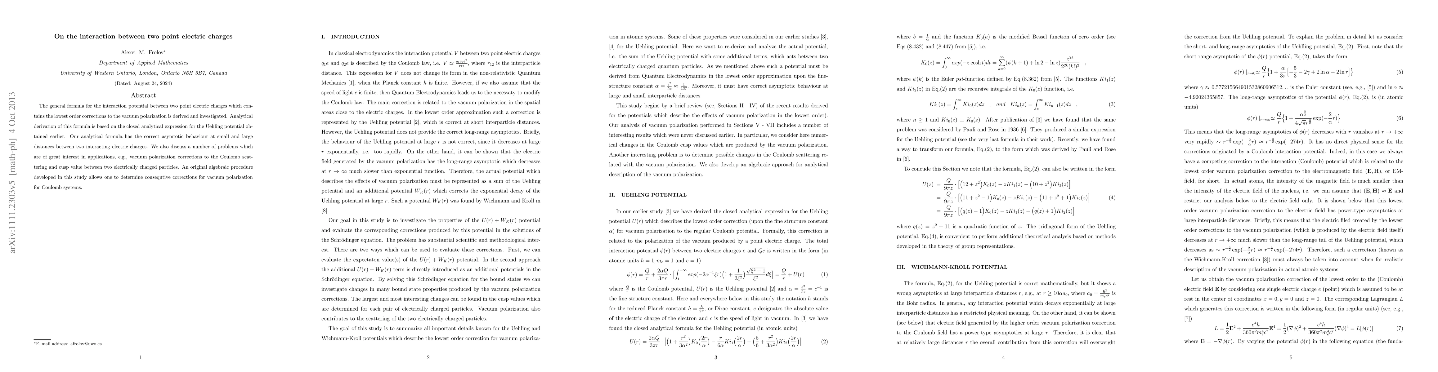 Researchers derived a formula for the interaction potential between two point electric charges, with corrections to vacuum polarization, and demonstrated its accuracy at small and large distances.
