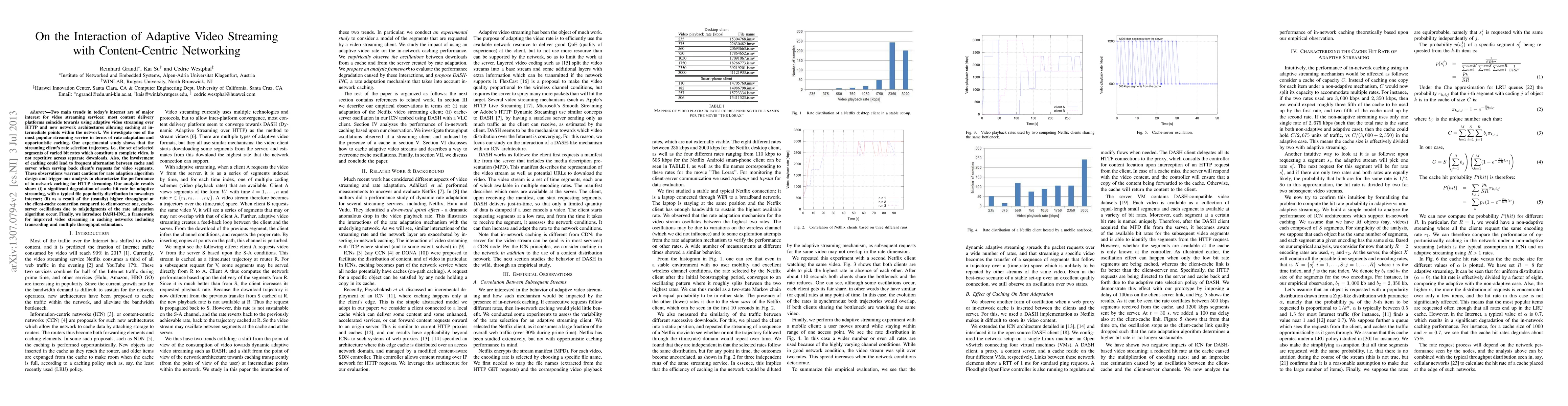 This paper examines the interaction between adaptive video streaming and content-centric networking, revealing that adaptive streaming's rate selection is non-repetitive and caching can cause frequent alternations between cache and server. The study introduces DASH-INC, a framework that includes transcoding and multiple throughput estimation to improve video streaming performance in caching networks.