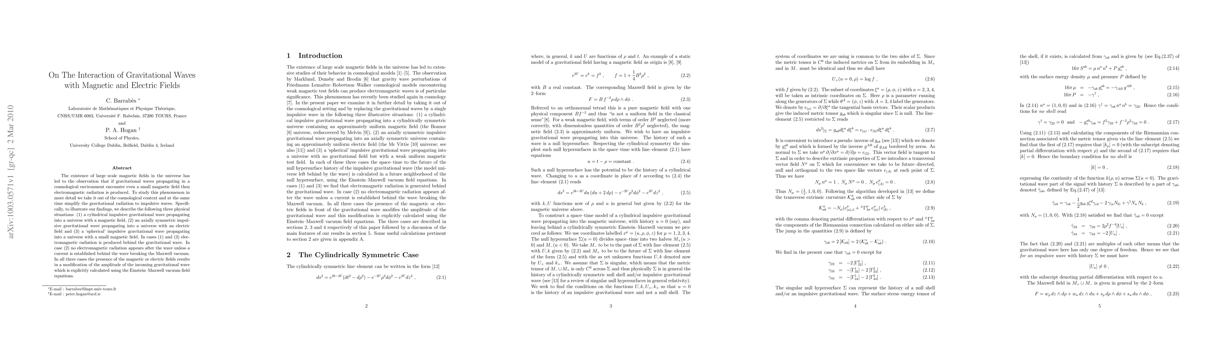 This paper investigates how impulsive gravitational waves interact with magnetic and electric fields, showing that electromagnetic radiation is produced in scenarios involving magnetic fields. The study calculates the amplitude modification of gravitational waves in three specific cases, revealing that electromagnetic radiation occurs behind the wave in the presence of magnetic fields, while electric fields require a current to induce radiation.