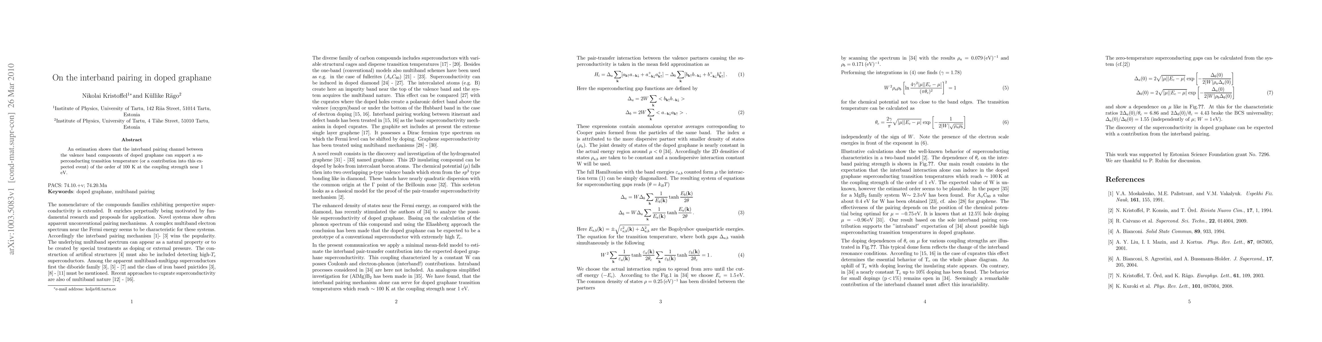 Doped graphane may support superconducting temperatures of up to 100 K due to interband pairing, a finding with implications for materials science research.