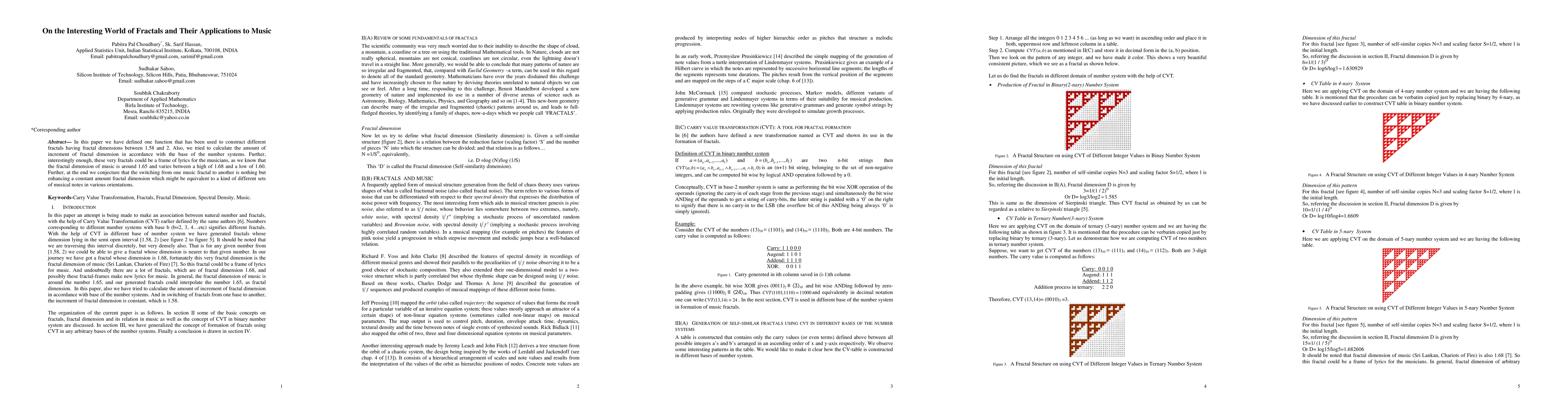 Researchers discovered fractals with dimensions between 1.58 and 2, similar to music's fractal dimension of 1.65. They suggest that switching between fractals corresponds to changing musical notes in varying orientations.