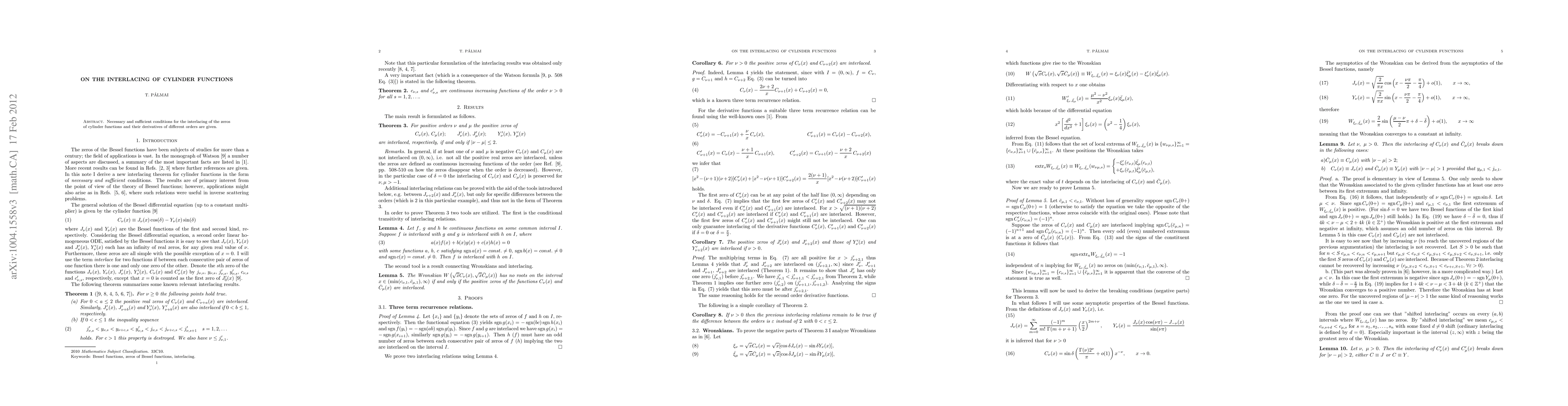 Necessary and sufficient conditions for the interlacing of the zeros of cylinder functions and their derivatives of different orders are given.