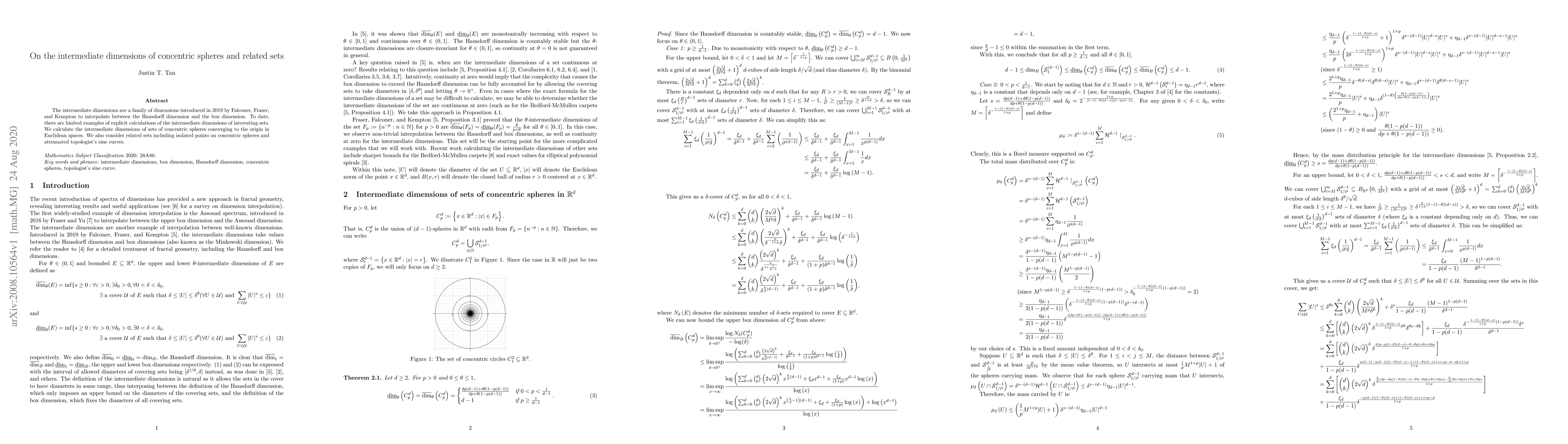 This paper calculates the intermediate dimensions of concentric spheres converging to the origin and related sets, expanding on the theoretical framework introduced by Falconer, Fraser, and Kempton in 2019 to interpolate between Hausdorff and box dimensions. It also examines isolated points and attenuated topologist's sine curves.