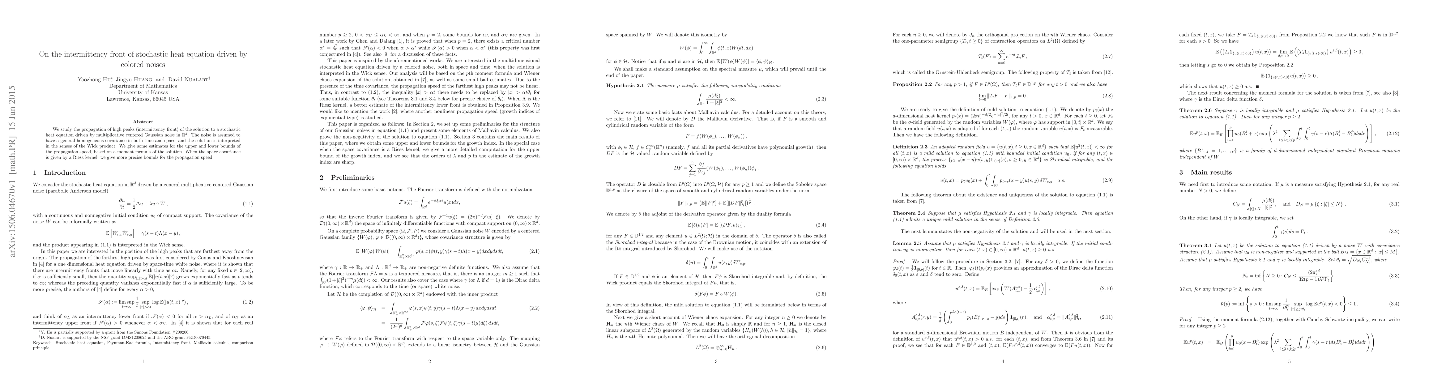 This paper investigates the intermittency front of high peaks in solutions to a stochastic heat equation driven by multiplicative Gaussian noise with general covariance. It provides estimates for the propagation speed and more precise bounds when the space covariance follows a Riesz kernel, using a moment formula approach.
