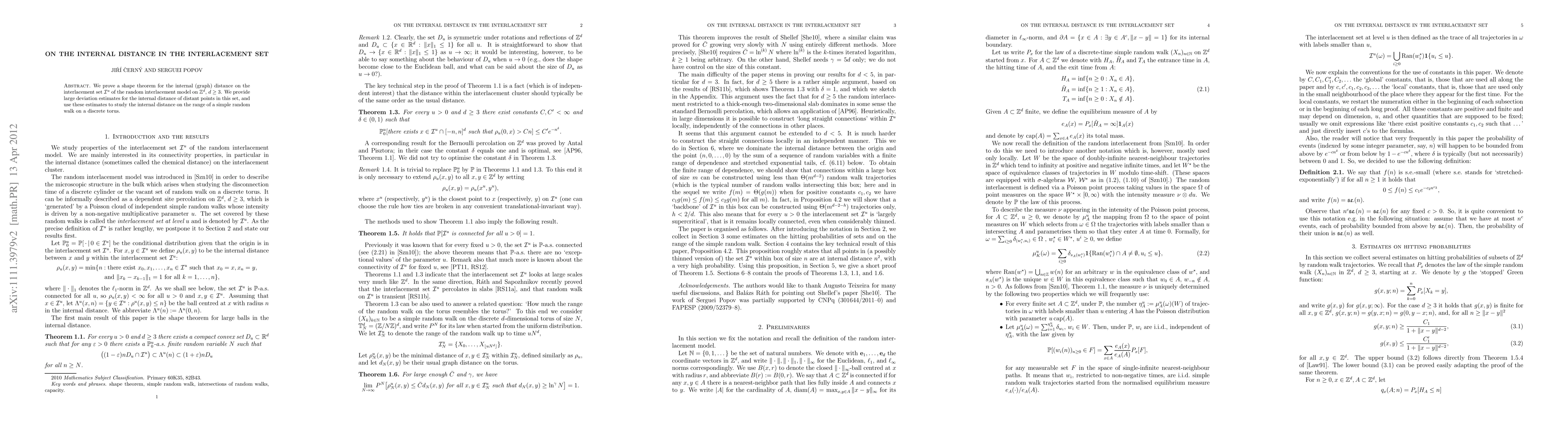 This paper proves a shape theorem for the internal distance in the interlacement set of the random interlacement model on $\mathbb{Z}^d$, $d\ge 3$, and provides large deviation estimates for the internal distance between distant points, applying these insights to study distances on the range of a simple random walk on a discrete torus.