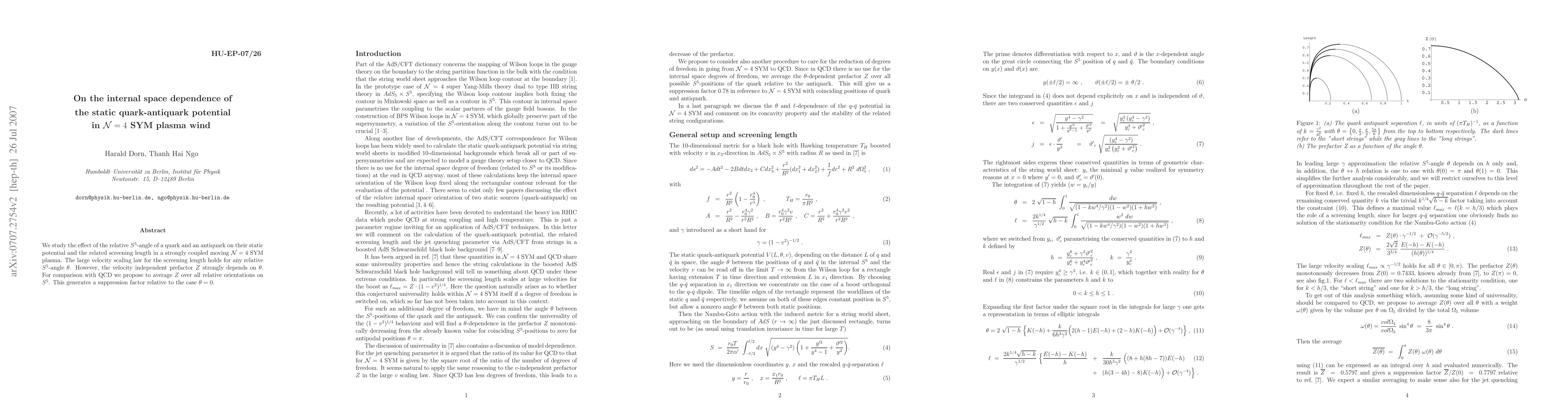 We study the effect of the relative S^5-angle of a quark and an antiquark on their static potential and the related screening length in a strongly coupled moving ${\cal N}=4$ SYM plasma. The large velocity scaling law for the screening length holds for any relative S^5-angle $\theta$. However, the velocity independent prefactor Z strongly depends on $\theta$. For comparison with QCD we propose to average Z over all relative orientations on S^5. This generates a suppression factor relative to the case $\theta =0$.