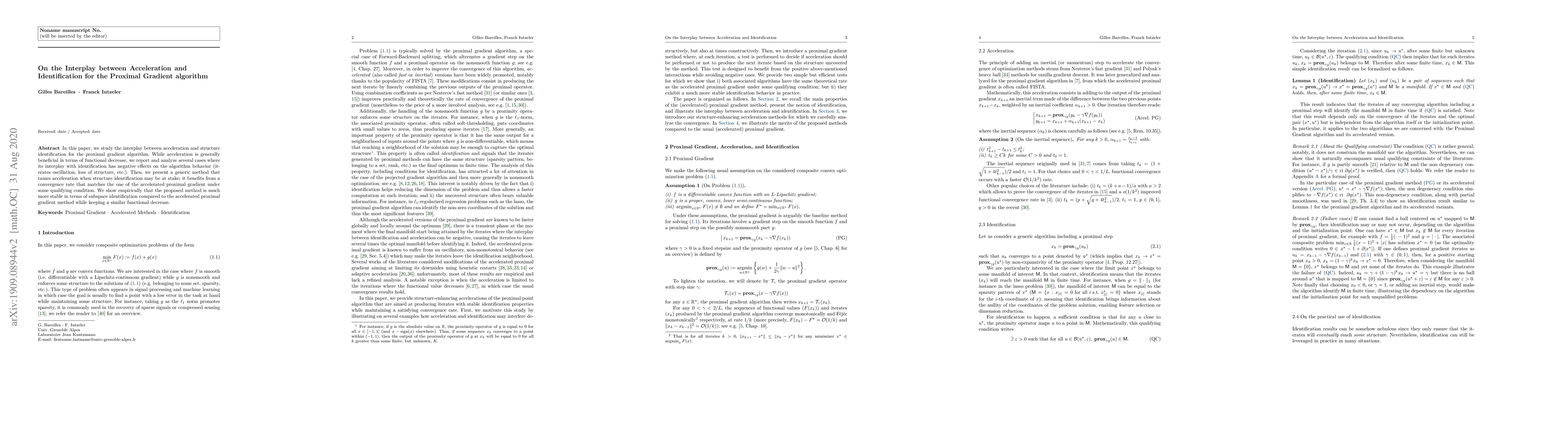 This paper investigates the negative effects of the interplay between acceleration and structure identification in the proximal gradient algorithm, proposing a method to mitigate these issues. The new approach maintains similar convergence rates while significantly improving stability in subspace identification.