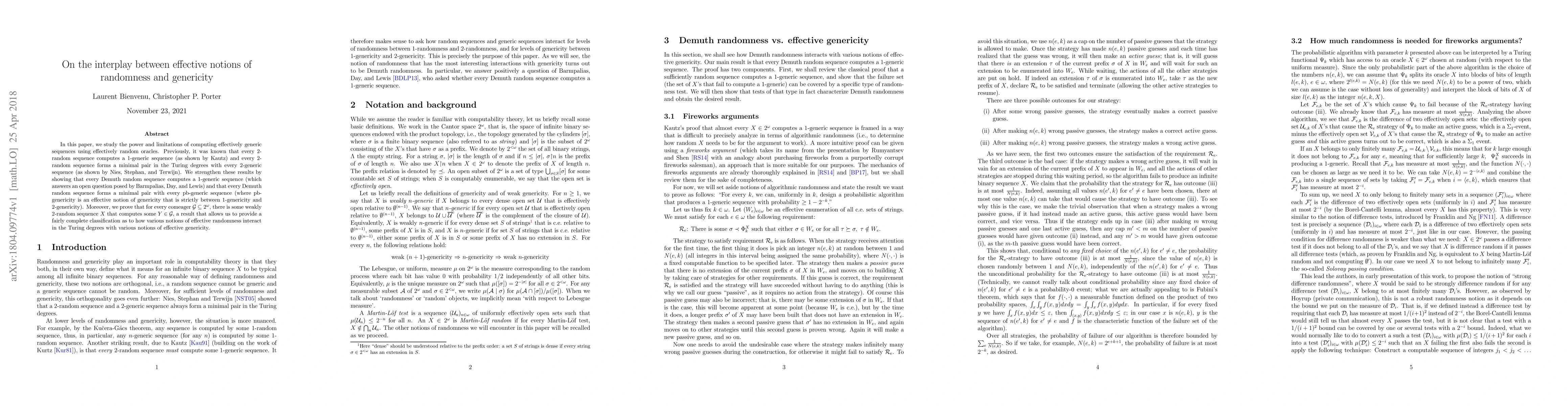 The paper studies the power of effectively random oracles in computing generic sequences, strengthening previous results on Demuth randomness and providing a complete classification of effective randomness and genericity interactions.