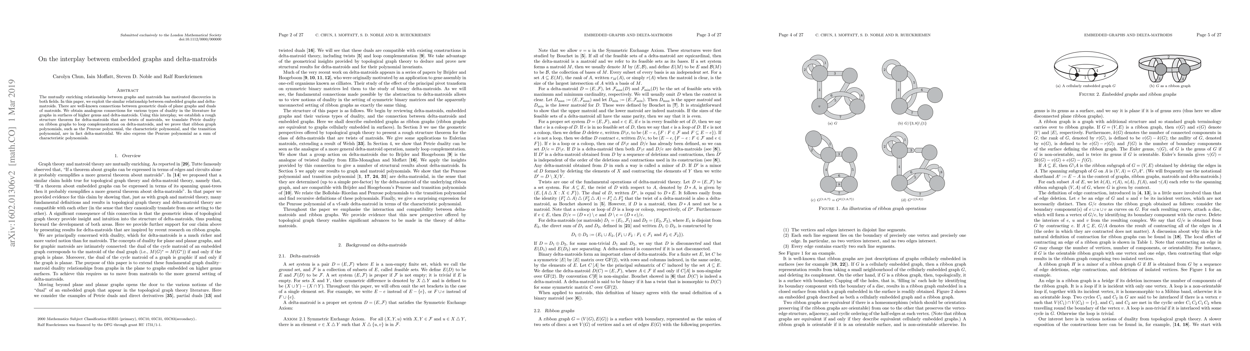 This paper explores the connections between embedded graphs in surfaces of higher genus and delta-matroids, establishing a structure theorem for twists of matroids and proving that various ribbon graph polynomials are delta-matroidal. It also translates Petrie duality on ribbon graphs to loop complementation on delta-matroids.