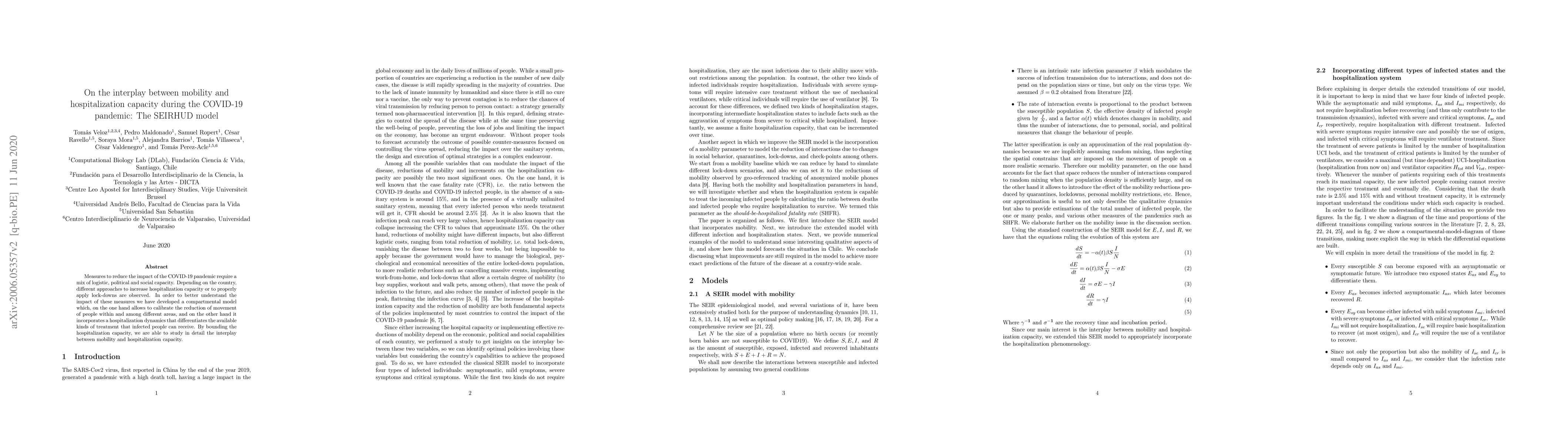 Measures to reduce the impact of the COVID-19 pandemic require a mix of logistic, political and social capacity. Depending on the country, different approaches to increase hospitalization capacity or to properly apply lock-downs are observed. In order to better understand the impact of these measures we have developed a compartmental model which, on the one hand allows to calibrate the reduction of movement of people within and among different areas, and on the other hand it incorporates a hospitalization dynamics that differentiates the available kinds of treatment that infected people can receive. By bounding the hospitalization capacity, we are able to study in detail the interplay between mobility and hospitalization capacity.