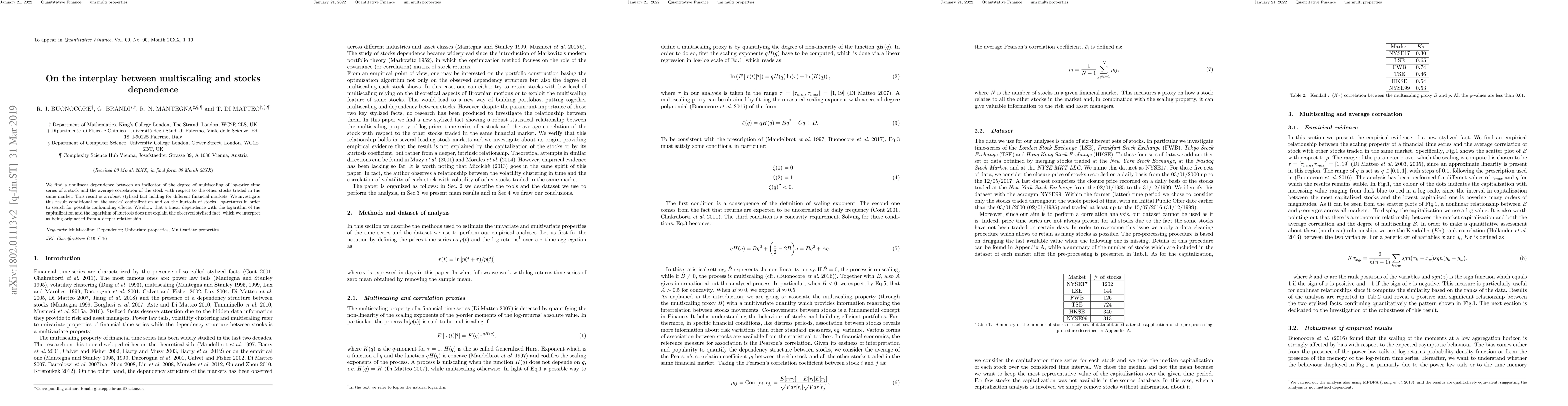 A study found a nonlinear relationship between stock prices' multiscaling and their correlations with other stocks in the same market. The findings suggest that this relationship may be driven by a deeper underlying mechanism rather than simple linear factors.