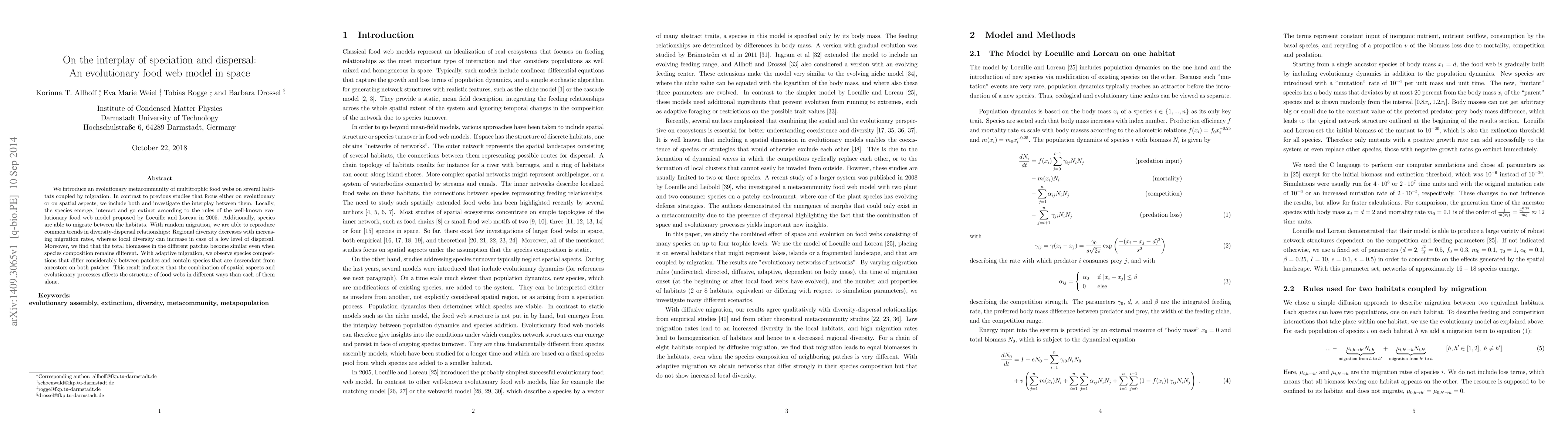 This paper explores an evolutionary metacommunity model where multitrophic food webs evolve and interact across multiple habitats connected by migration. It finds that both random and adaptive migration influence species diversity and biomass distribution, revealing complex interactions between spatial dynamics and evolutionary processes.