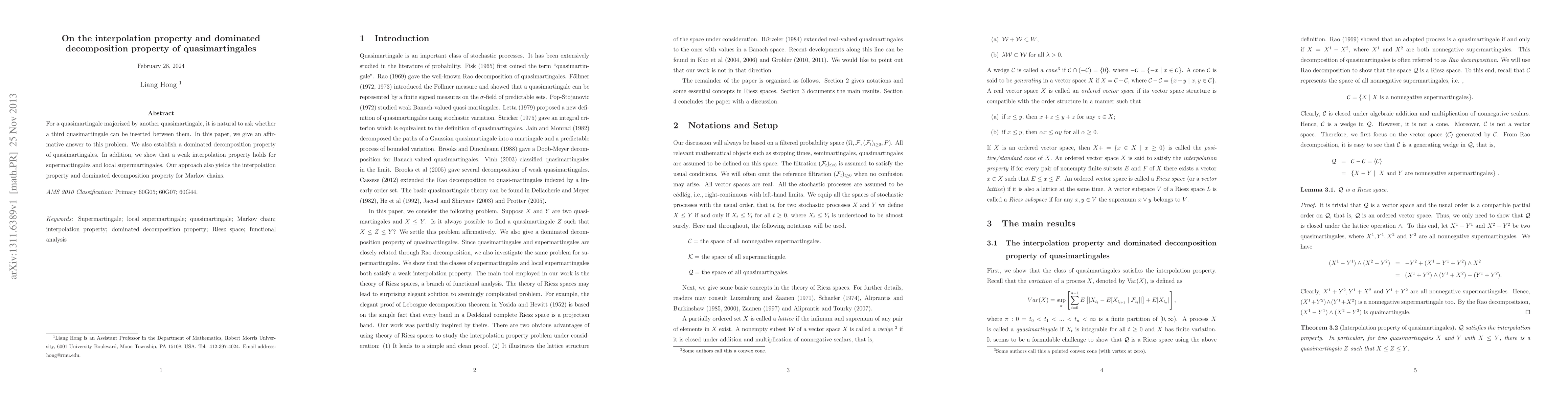 This paper affirms the interpolation property for quasimartingales majorized by another quasimartingale and establishes a dominated decomposition property. It also demonstrates weak interpolation for supermartingales and local supermartingales, extending these results to Markov chains.