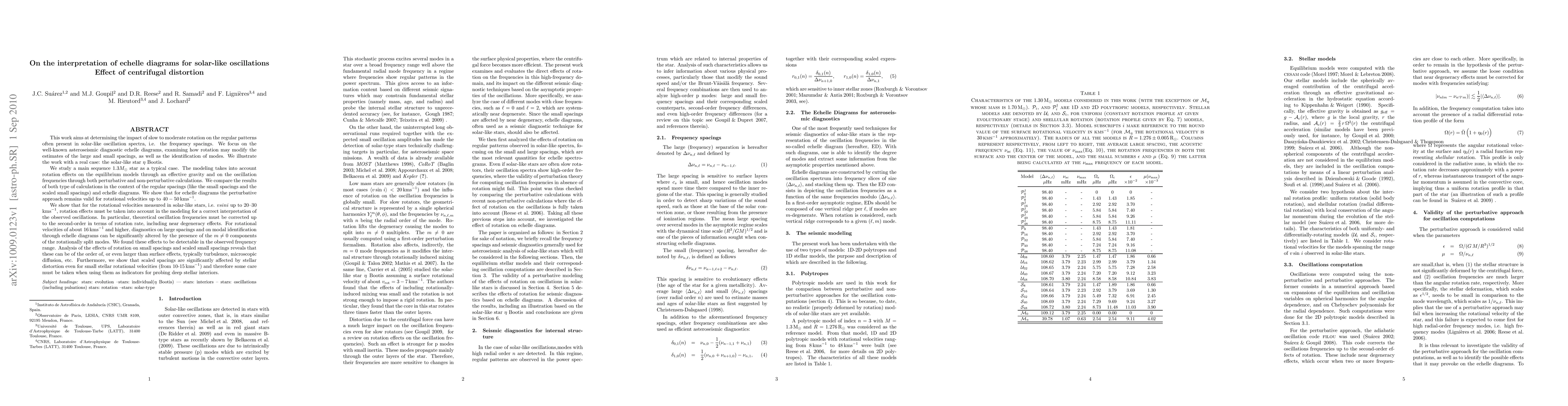 This work aims at determining the impact of slow to moderate rotation on the regular patterns often present in solar-like oscillation spectra. We focus on the well-known asteroseismic diagnostic echelle diagrams, examining how rotation may modify the estimates of the large and small spacings, as well as the identification of modes. We illustrate the work with a real case: the solar-like star $\eta$ Bootis. The modeling takes into account rotation effects on the equilibrium models through an effective gravity and on the oscillation frequencies through both perturbative and non-perturbative calculations. We compare the results of both type of calculations in the context of the regular spacings (like the small spacings and the scaled small spacings) and echelle diagrams. We show that for echelle diagrams the perturbative approach remains valid for rotational velocities up to 40-50 km/s. We show that for the rotational velocities measured in solar-like stars, theoretical oscillation frequencies must be corrected up to the second-order in terms of rotation rate, including near degeneracy effects. For rotational velocities of about 16 km/S and higher, diagnostics on large spacings and on modal identification through echelle diagrams can be significantly altered by the presence of the $m\neq0$ components of the rotationally split modes. We found these effects to be detectable in the observed frequency range. Analysis of the effects of rotation on small spacings and scaled small spacings reveals that these can be of the order of, or even larger than surface effects, typically turbulence, microscopic diffusion, etc. Furthermore, we show that scaled spacings are significantly affected by stellar distortion even for small stellar rotational velocities (from 10-15 km/s) and therefore some care must be taken when using them as indicators for probing deep stellar interiors.