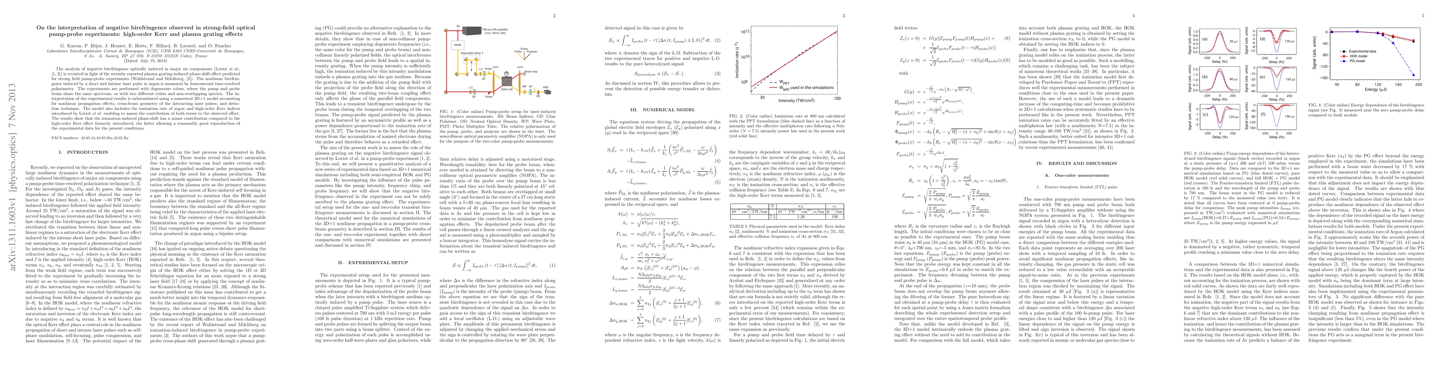 This paper revisits the interpretation of negative birefringence observed in strong-field optical pump-probe experiments, attributing it primarily to high-order Kerr effects rather than ionization-induced phase shifts. The study uses femtosecond time-resolved polarimetry to measure birefringence in argon, supported by a 3D+1 numerical model that accounts for various nonlinear propagation effects.