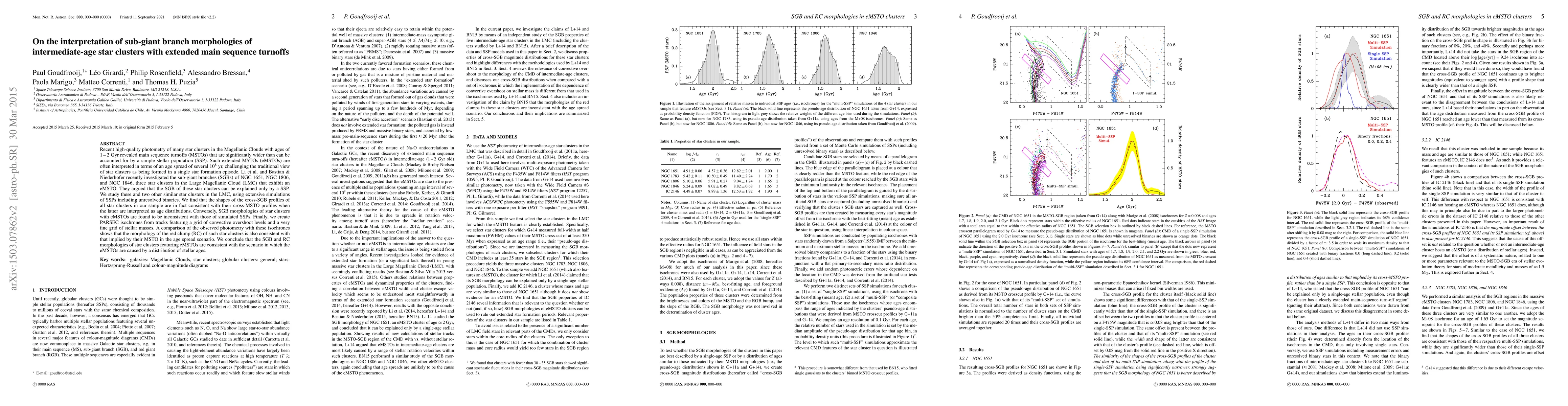 Recent high-quality photometry of many star clusters in the Magellanic Clouds with ages of 1$\,-\,$2 Gyr revealed main sequence turnoffs (MSTOs) that are significantly wider than can be accounted for by a simple stellar population (SSP). Such extended MSTOs (eMSTOs) are often interpreted in terms of an age spread of several $10^8$ yr, challenging the traditional view of star clusters as being formed in a single star formation episode. Li et al. and Bastian & Niederhofer recently investigated the sub-giant branches (SGBs) of NGC 1651, NGC 1806, and NGC 1846, three star clusters in the Large Magellanic Cloud (LMC) that exhibit an eMSTO. They argued that the SGB of these star clusters can be explained only by a SSP. We study these and two other similar star clusters in the LMC, using extensive simulations of SSPs including unresolved binaries. We find that the shapes of the cross-SGB profiles of all star clusters in our sample are in fact consistent with their cross-MSTO profiles when the latter are interpreted as age distributions. Conversely, SGB morphologies of star clusters with eMSTOs are found to be inconsistent with those of simulated SSPs. Finally, we create PARSEC isochrones from tracks featuring a grid of convective overshoot levels and a very fine grid of stellar masses. A comparison of the observed photometry with these isochrones shows that the morphology of the red clump (RC) of such star clusters is also consistent with that implied by their MSTO in the age spread scenario. We conclude that the SGB and RC morphologies of star clusters featuring eMSTOs are consistent with the scenario in which the eMSTOs are caused by a distribution of stellar ages.