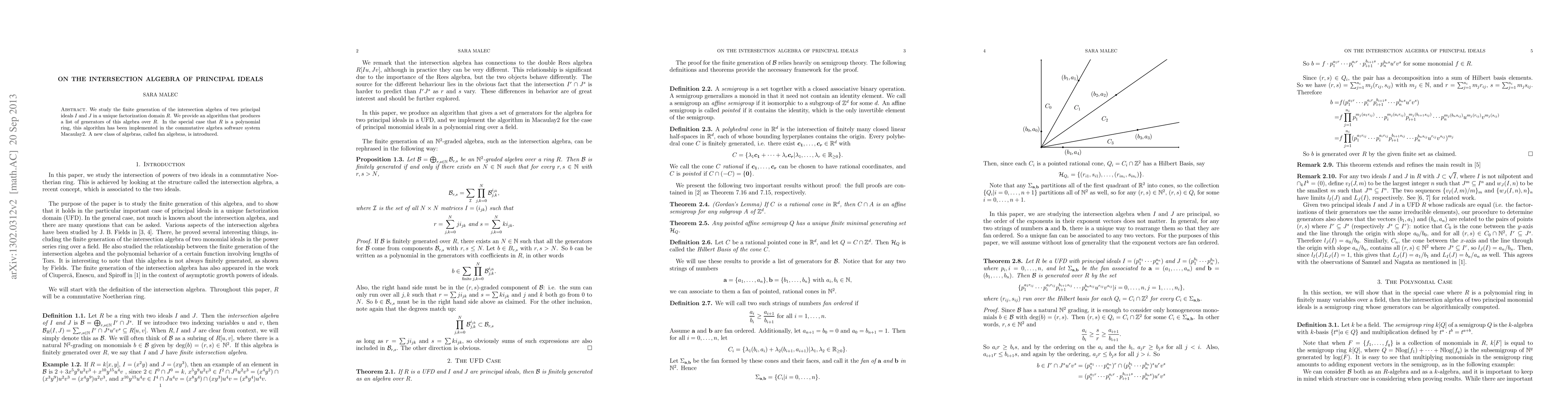 We study the finite generation of the intersection algebra of two principal ideals I and J in a unique factorization domain R. We provide an algorithm that produces a list of generators of this algebra over R. In the special case that R is a polynomial ring, this algorithm has been implemented in the commutative algebra software system Macaulay2. A new class of algebras, called fan algebras, is introduced.