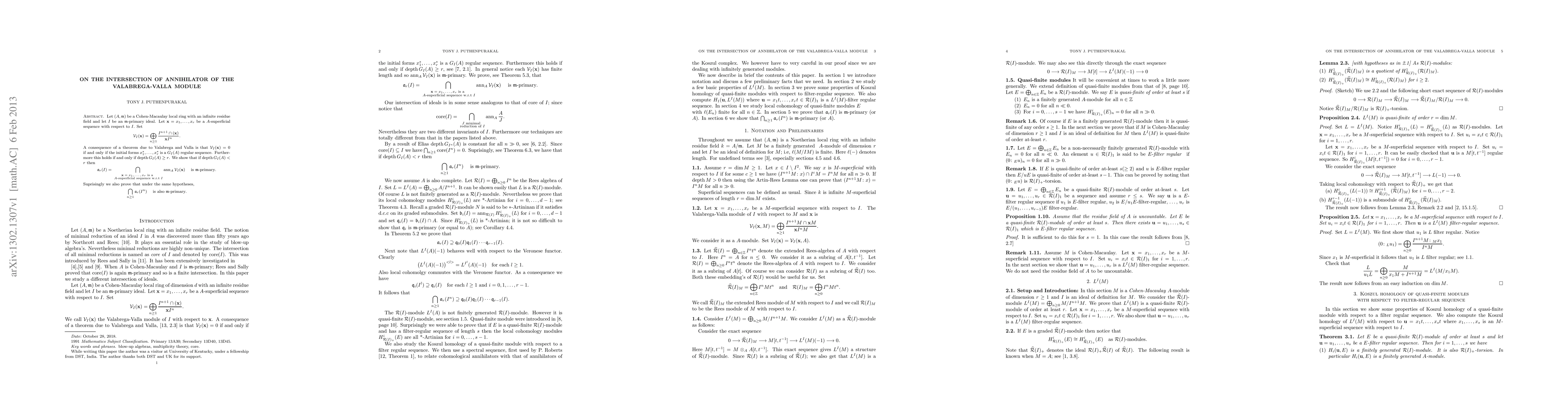 Let $(A,\m)$ be a \CM \ local ring with an infinite residue field and let $I$ be an $\m$-primary ideal. Let $\bx = x_1,\ldots,x_r$ be a $A$-superficial sequence \wrt \ $I$. Set $$\Vc_I(\bx) = \bigoplus_{n\geq 1} \frac{I^{n+1}\cap (\bx)}{\bx I^n}. $$ A consequence of a theorem due to Valabrega and Valla is that $\Vc_I(\bx) = 0$ \ff \ the initial forms $x_1^*,\ldots,x_r^*$ is a $G_I(A)$ regular sequence. Furthermore this holds if and only if $\depth G_I(A) \geq r$. We show that if $\depth G_I(A) < r$ then \[ \af_r(I)= \bigcap_{\substack{\text{$\bx = x_1,\ldots,x_r$ is a} \\ \text{$A$-superficial sequence w.r.t $I$}}} \ann_A \Vc_I(\bx) \quad \ \text{is} \ \m\text{-primary}. \] Suprisingly we also prove that under the same hypotheses, \[ \bigcap_{n\geq 1} \af_r(I^n) \quad \ \text{is also} \ \m\text{-primary}. \]