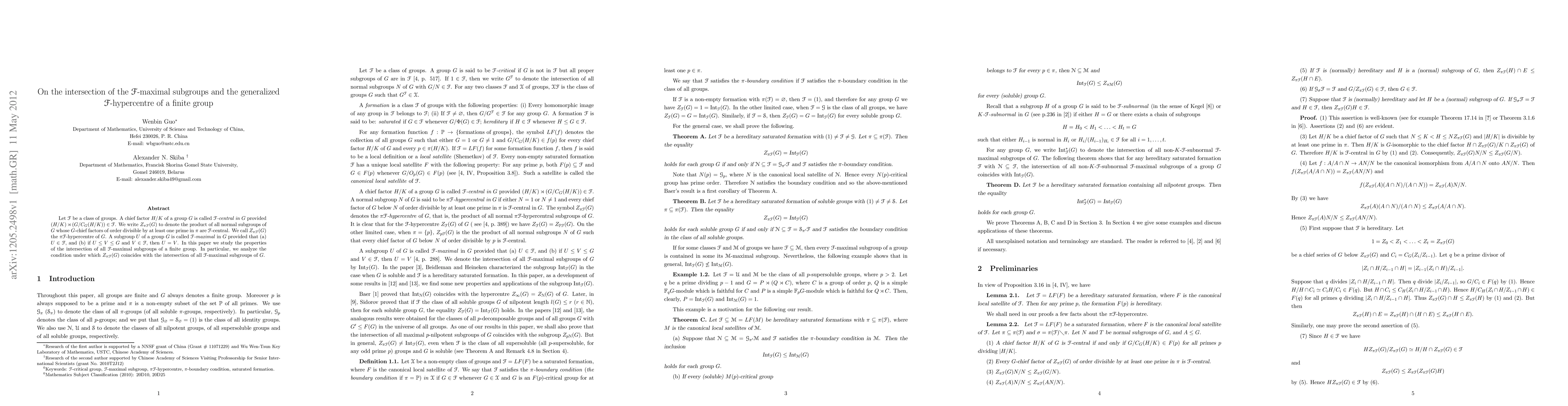 Let $\cal F$ be a class of groups. A chief factor $H/K$ of a group $G$ is called \emph{${\cal F}$-central in $G$} provided $(H/K)\rtimes (G/C_{G}(H/K)) \in {\cal F}$. We write $Z_{\pi{\cal F}}(G)$ to denote the product of all normal subgroups of $G$ whose $G$-chief factors of order divisible by at least one prime in $\pi$ are $\cal F$-central. We call $Z_{\pi{\cal F}}(G)$ the $\pi{\cal F}$-hypercentre of $G$. A subgroup $U$ of a group $G$ is called \emph{$\cal F$-maximal} in $G$ provided that (a) $U\in {\cal F}$, and (b) if $U\leq V\leq G$ and $V\in {\cal F}$, then $U=V$. In this paper we study the properties of the intersection of all $\cal F$-maximal subgroups of a finite group. In particular, we analyze the condition under which $Z_{\pi{\cal F}}(G)$ coincides with the intersection of all $\cal F$-maximal subgroups of $G$.