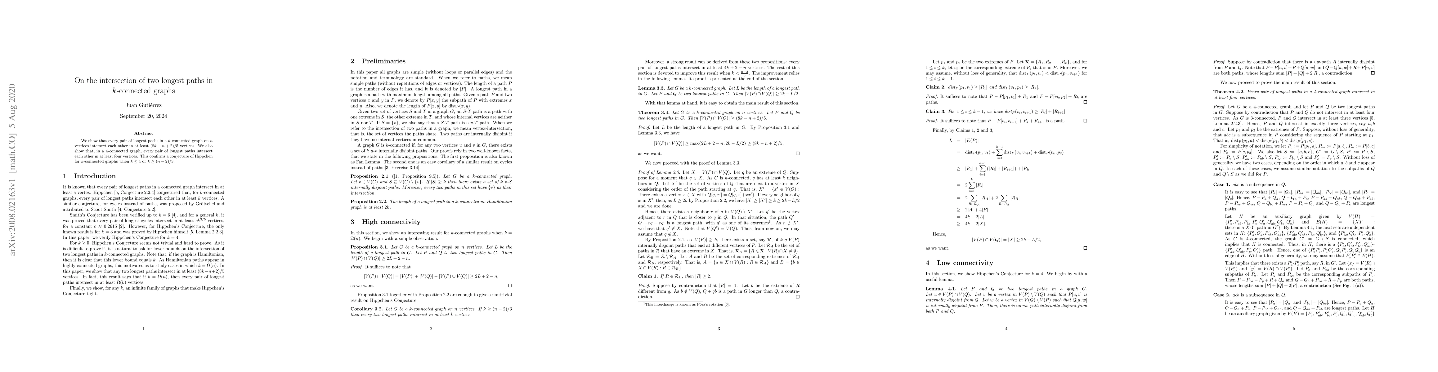 We show that every pair of longest paths in a $k$-connected graph on $n$ vertices intersect each other in at least $(8k-n+2)/5$ vertices. We also show that, in a 4-connected graph, every pair of longest paths intersect each other in at least four vertices. This confirms a conjecture of Hippchen for $k$-connected graphs when $k\leq 4$ or $k\geq (n-2)/3$.